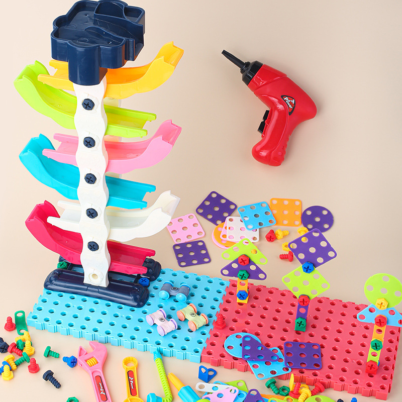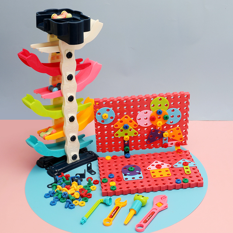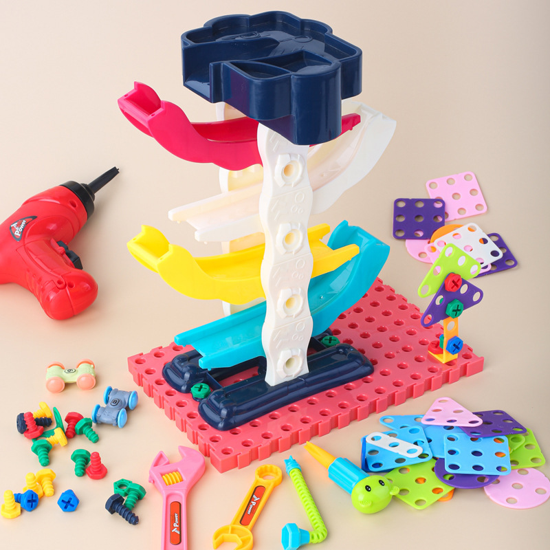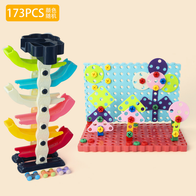 children's screw assembly toy fun gliding car puzzle assembled building block toys cross-border amazon