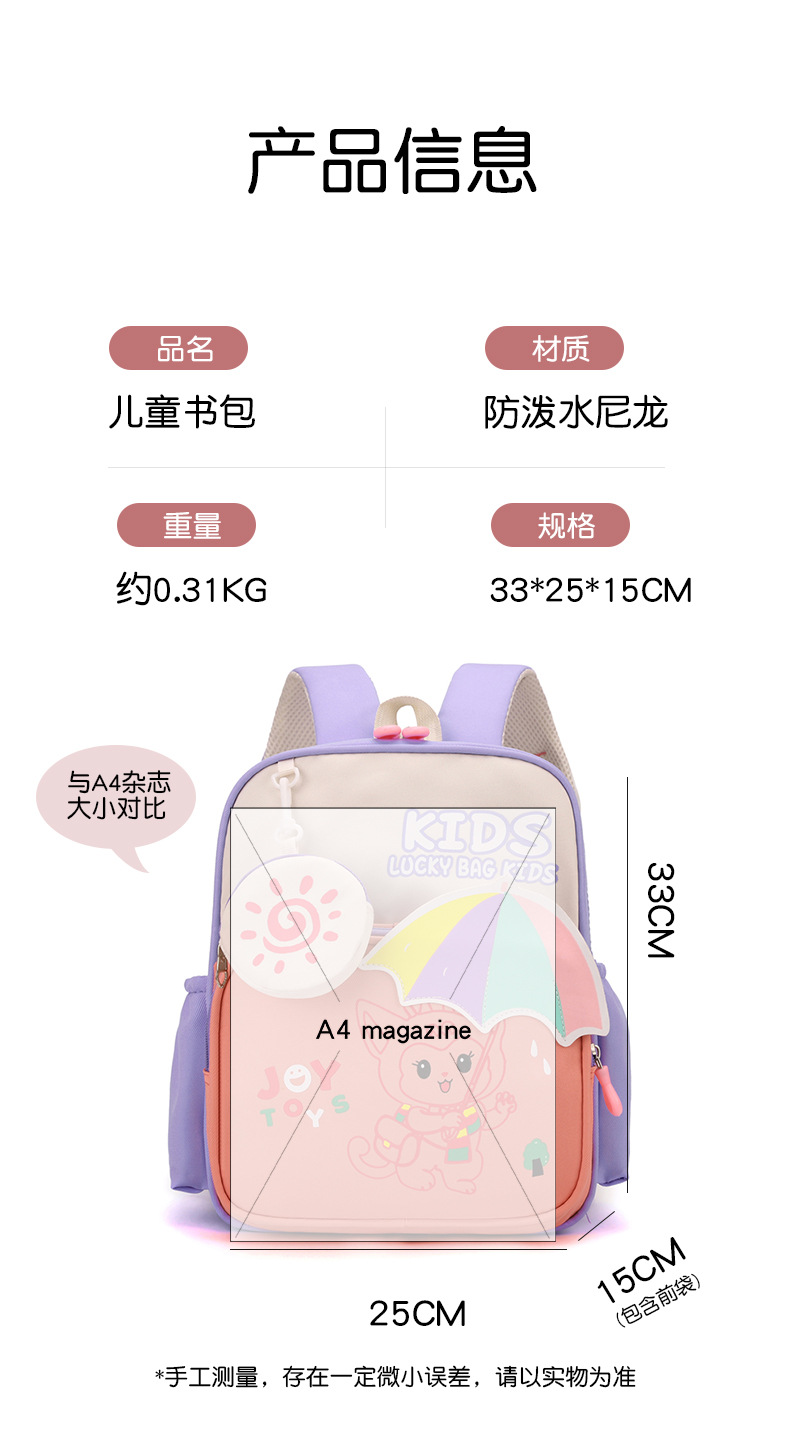 cross-border new arrival children's backpack lightweight and large capacity boys girls' backpack kindergarten backpack 中文版