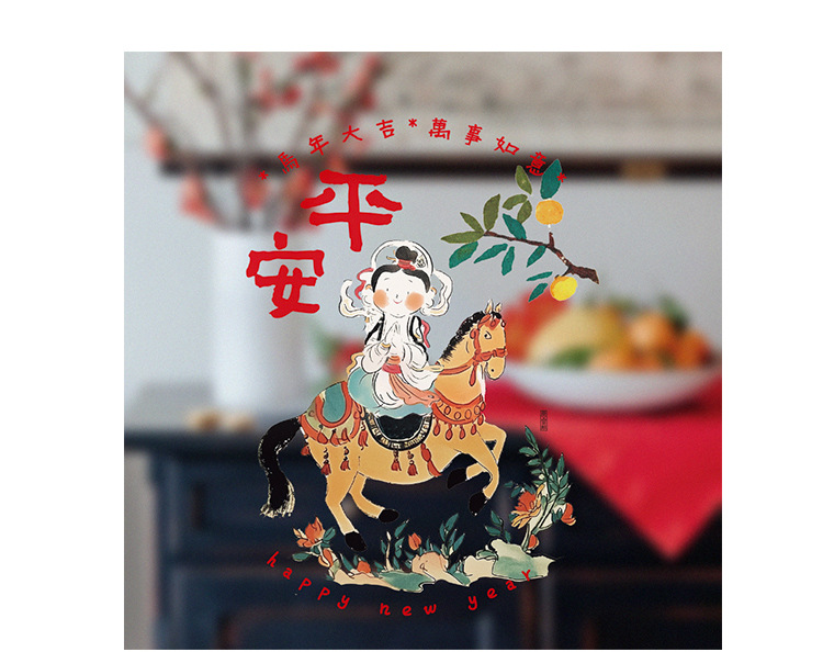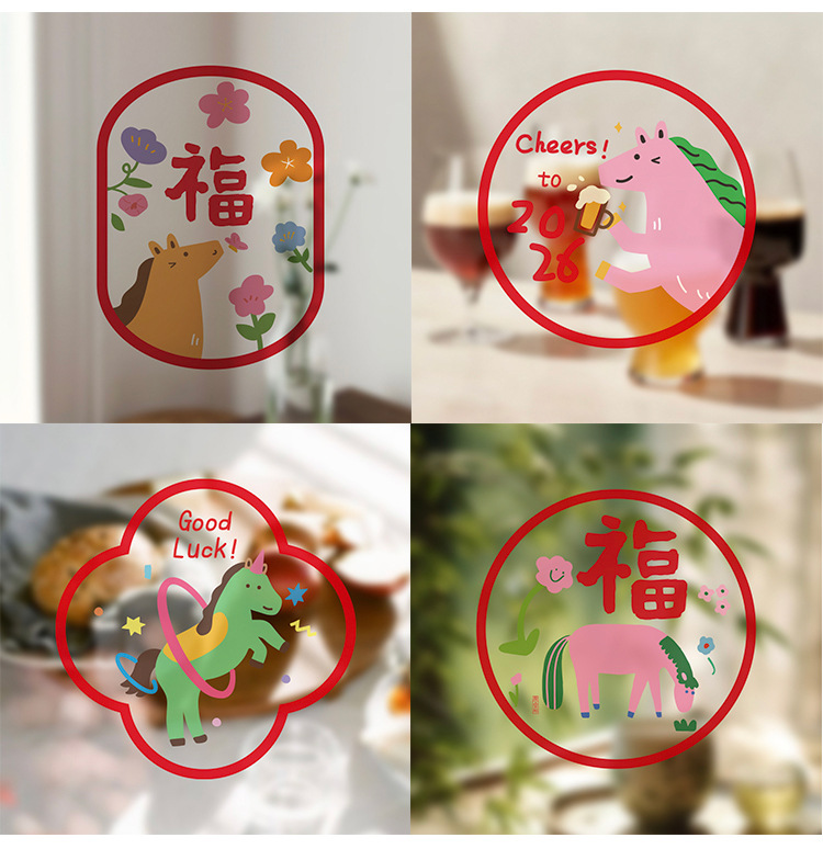 28x/double horse sending blessing color static sticker