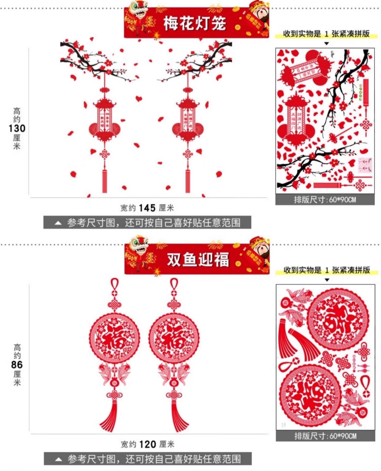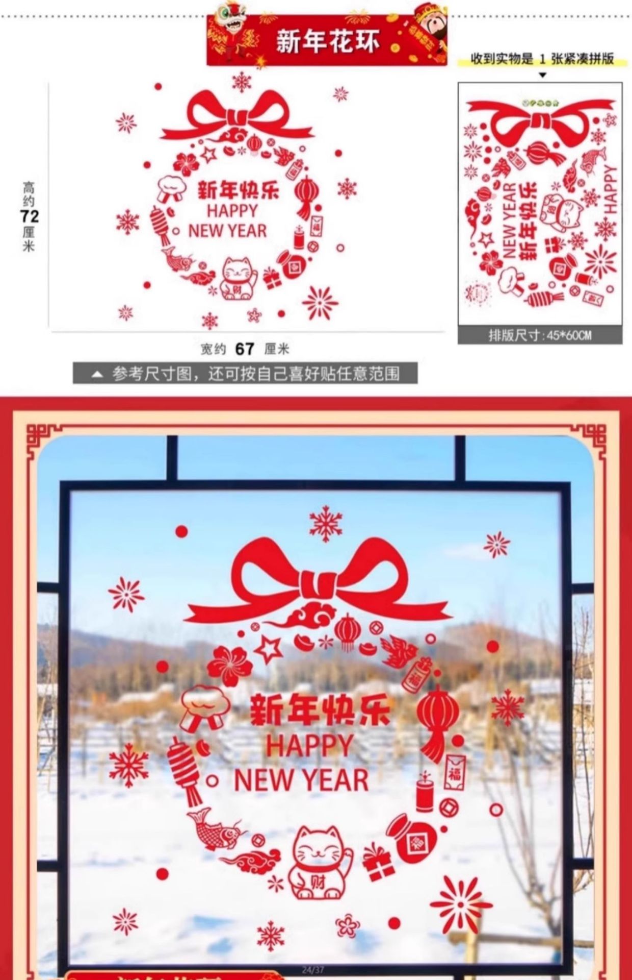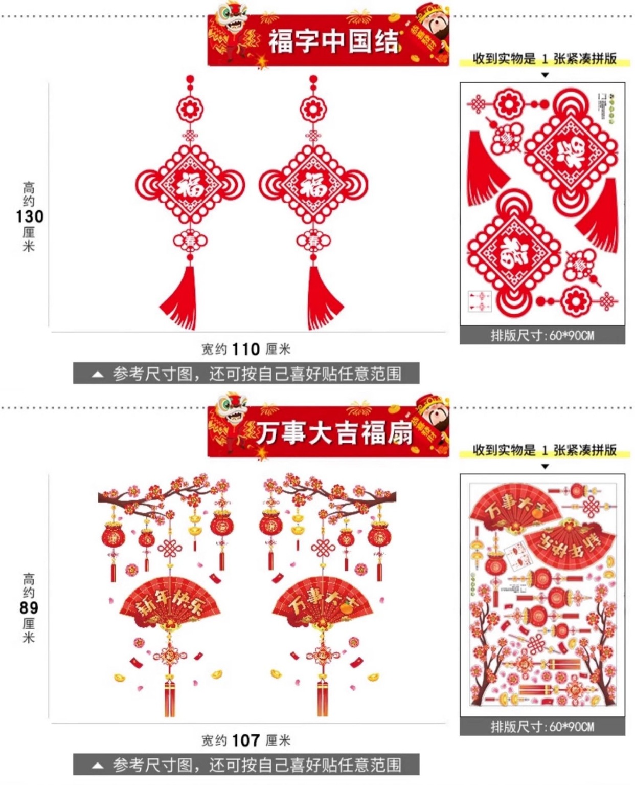 01. new year's fu character door sticker [static glue-free] [double-sided same color]]