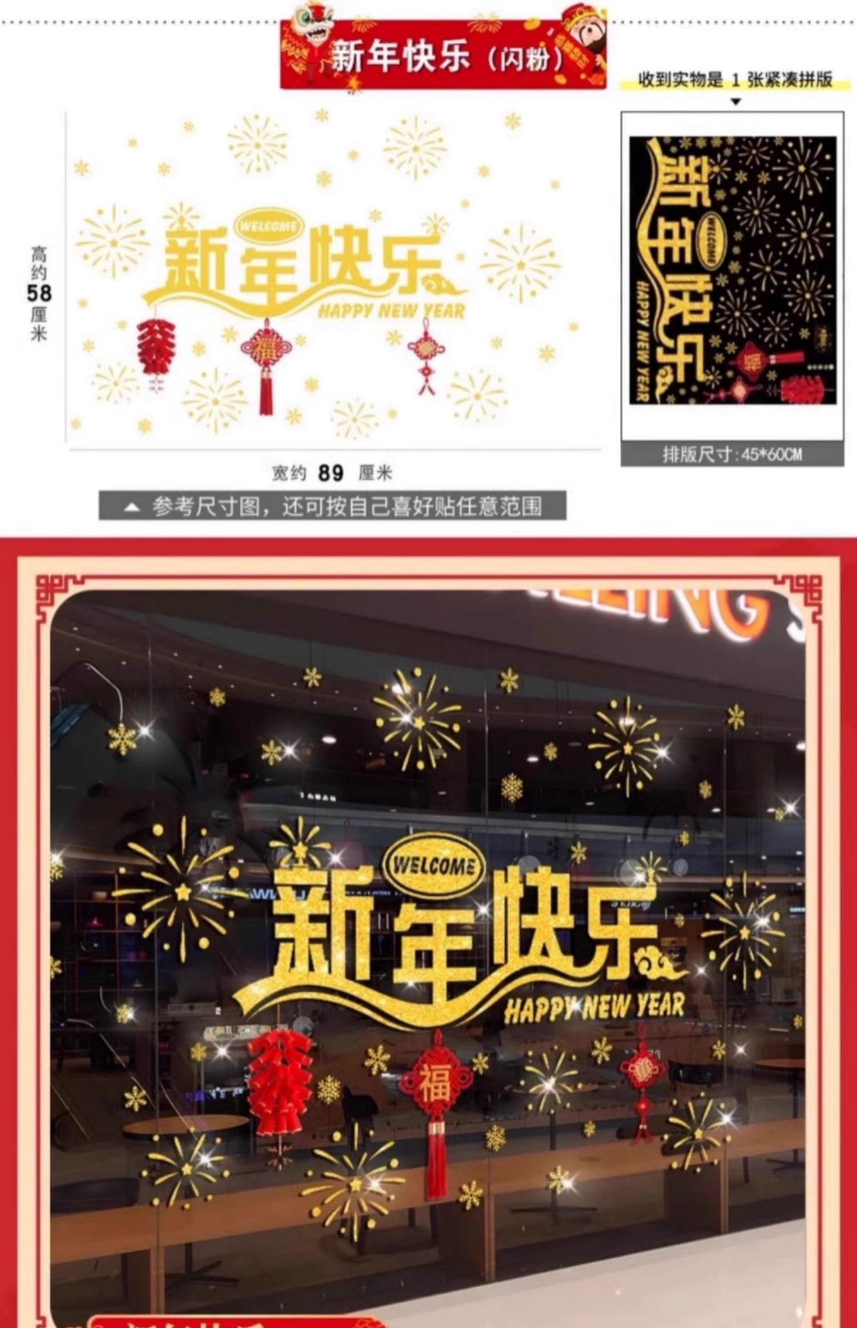 30. happy new year [glitter static glue-free] [double-sided same color]]