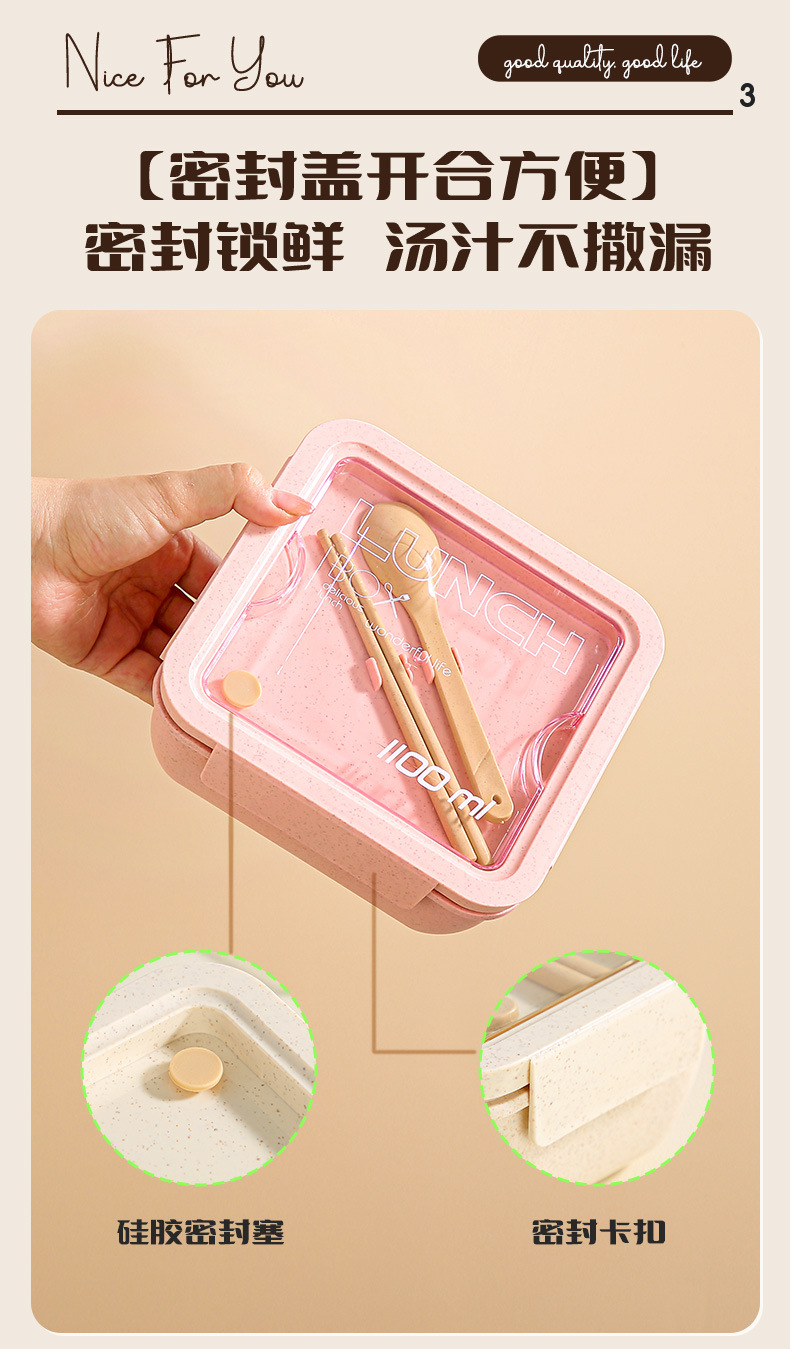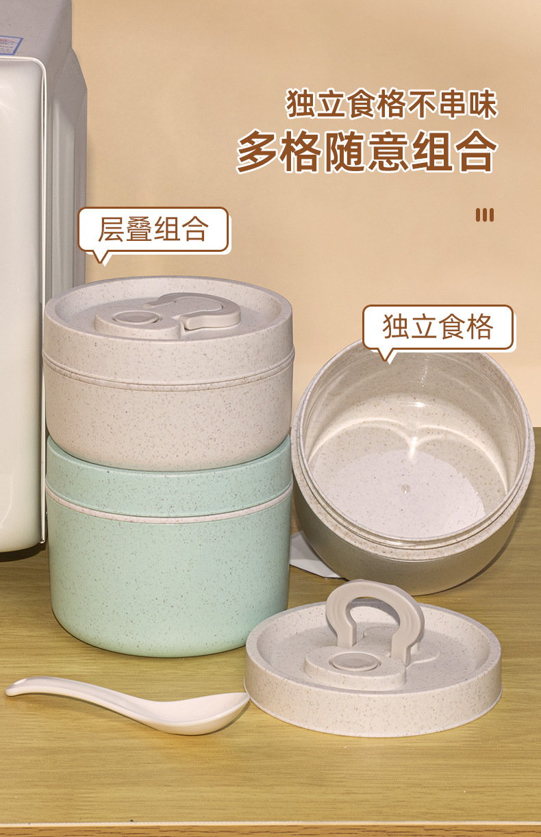 [3-piece set] beige square lunch box + soup cups + lunch box bag