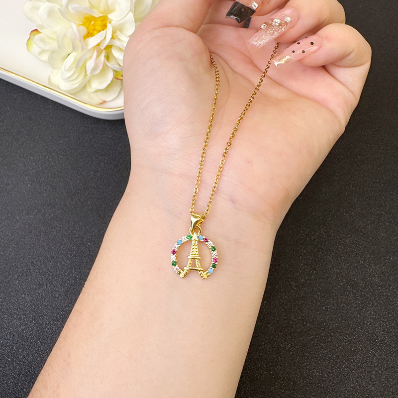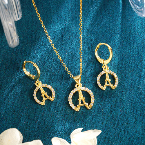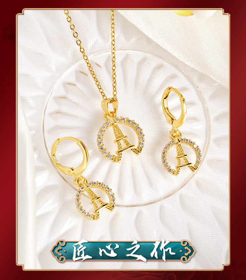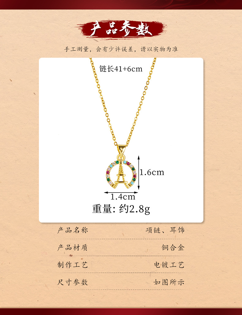 vietnam alluvial gold necklace european and american style micro inlaid eiffel tower earrings women's simple high sense no color fading ornament 中文版