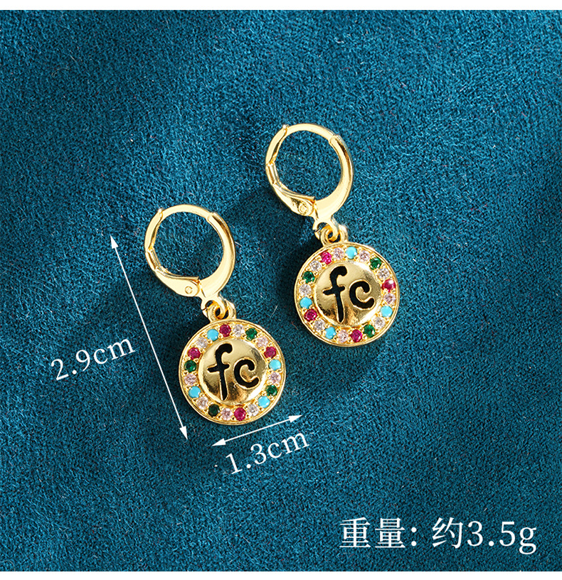 e2473 letter round card earrings-colorful crystals ¥5.5 99999 piece available