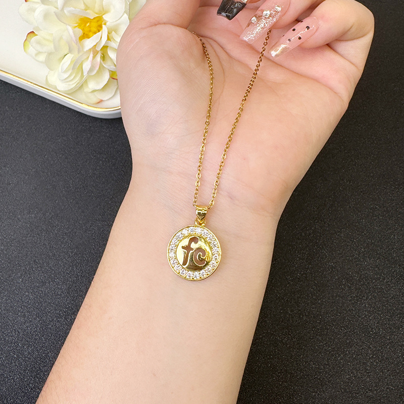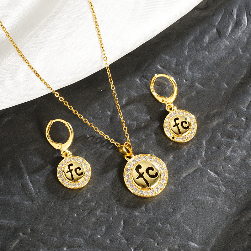new vietnam alluvial gold necklace simple women's round brand alphabet letter earrings all-match light luxury wind does not fade for a long time cross-border sold jewelry 中文版
