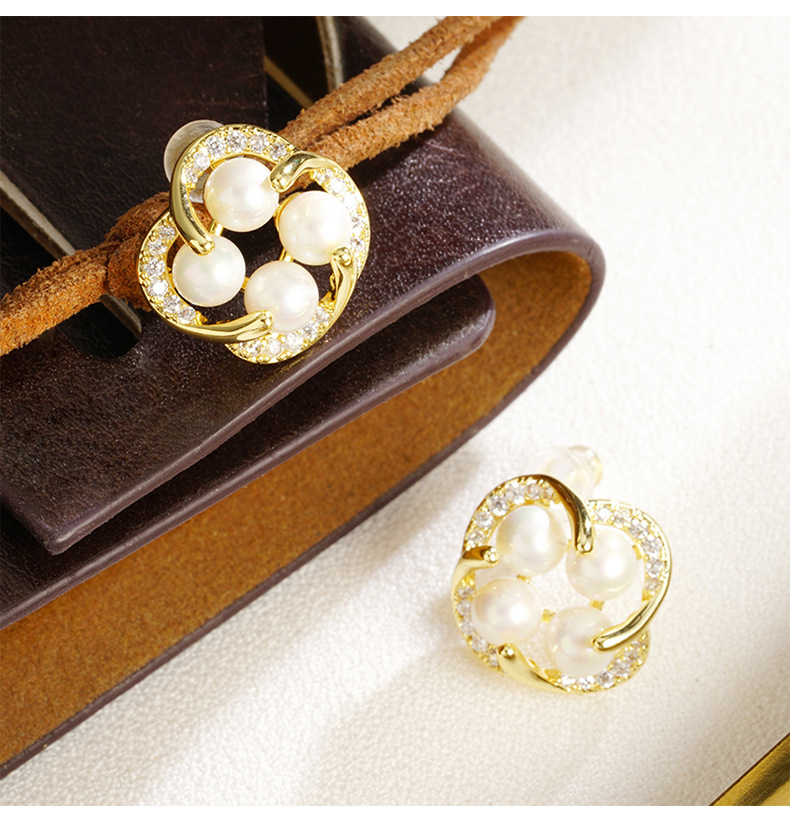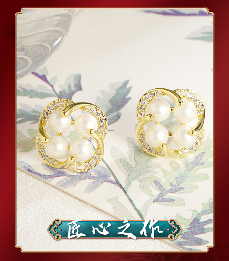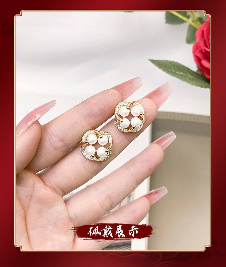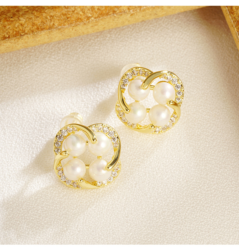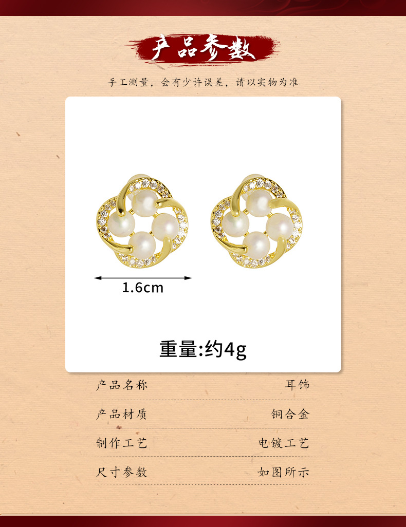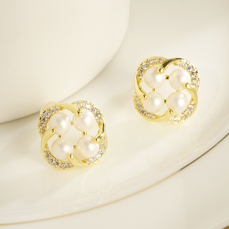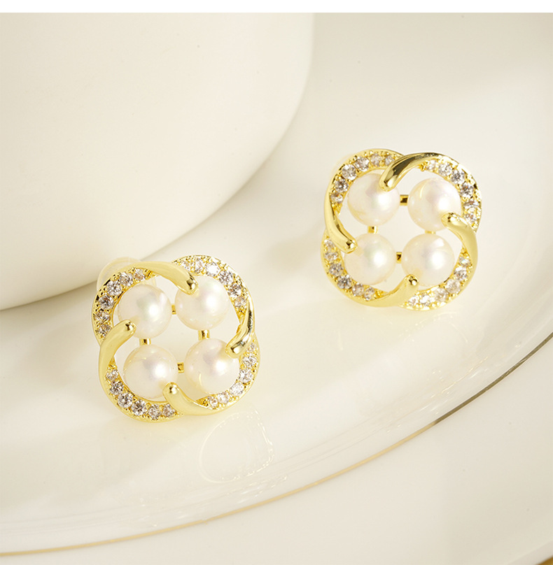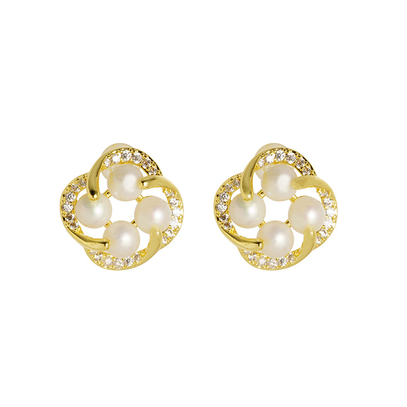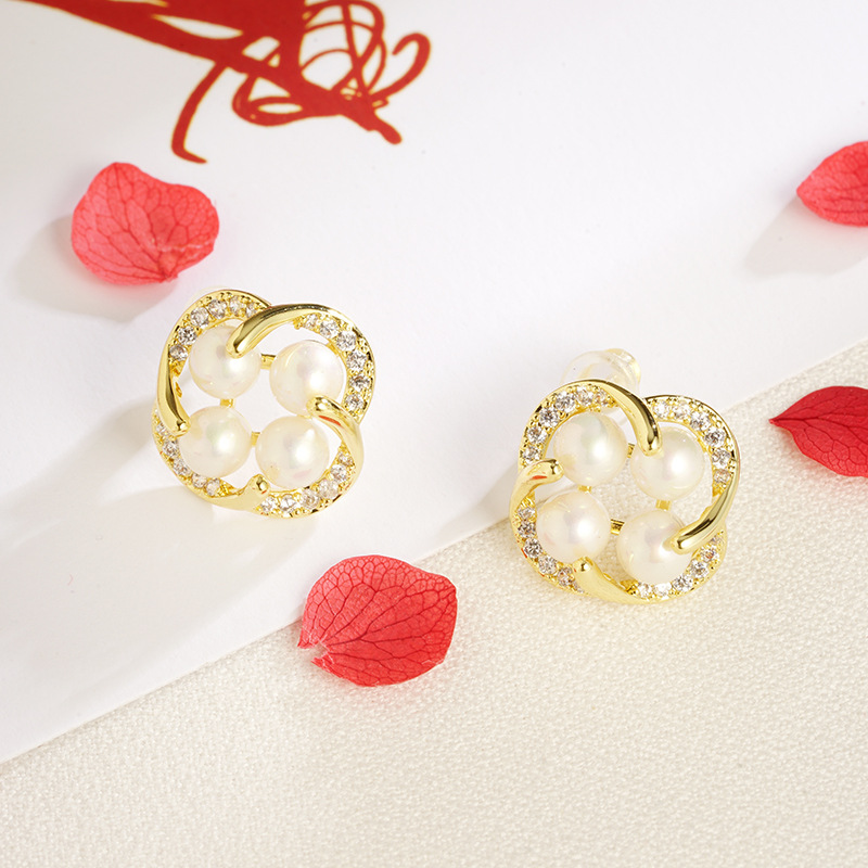 cross-border 18k gold plated european and american japanese and korean style imitation pearl flower stud earrings women's fresh all-match factory direct supply 中文版