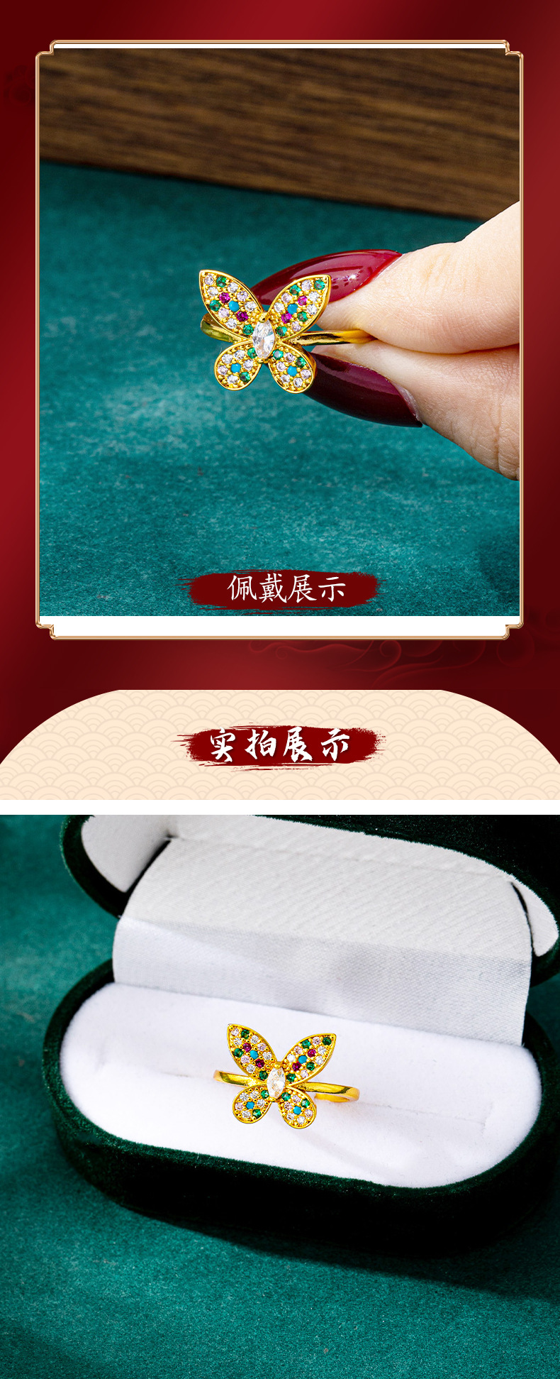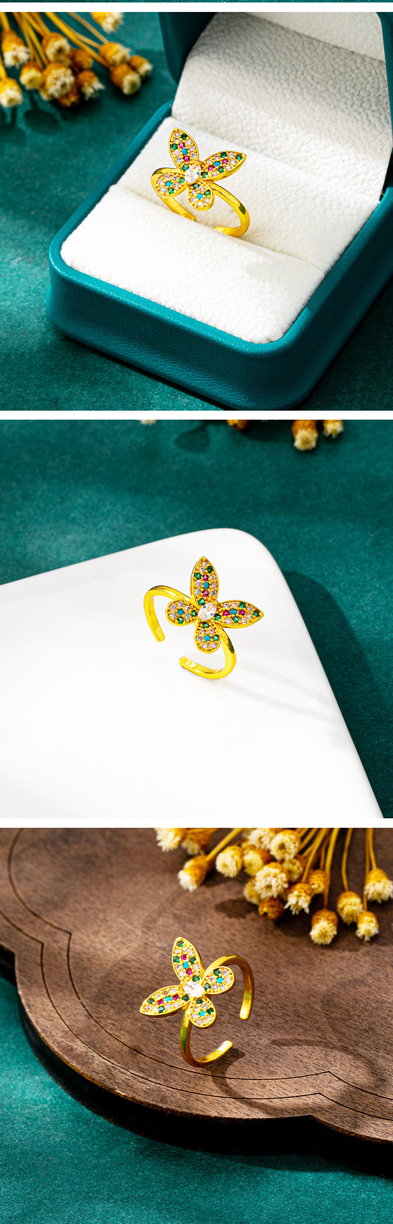 cross-border high-grade inlaid color zirconium ring female vietnam placer gold butterfly ring simple no color fading yiwu accessories 中文版