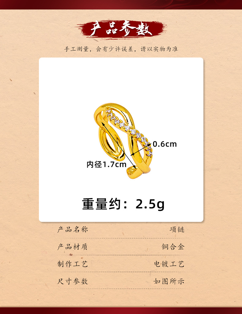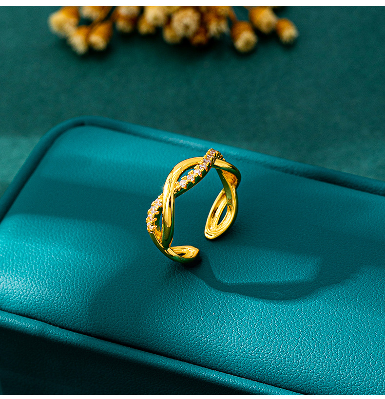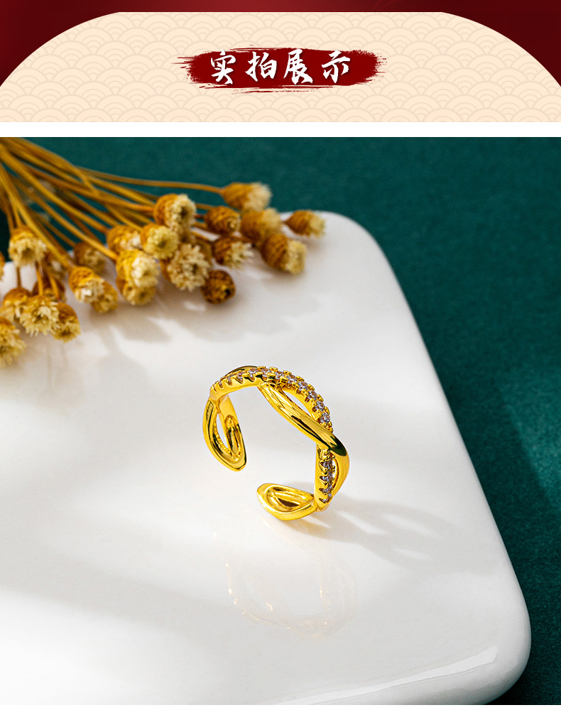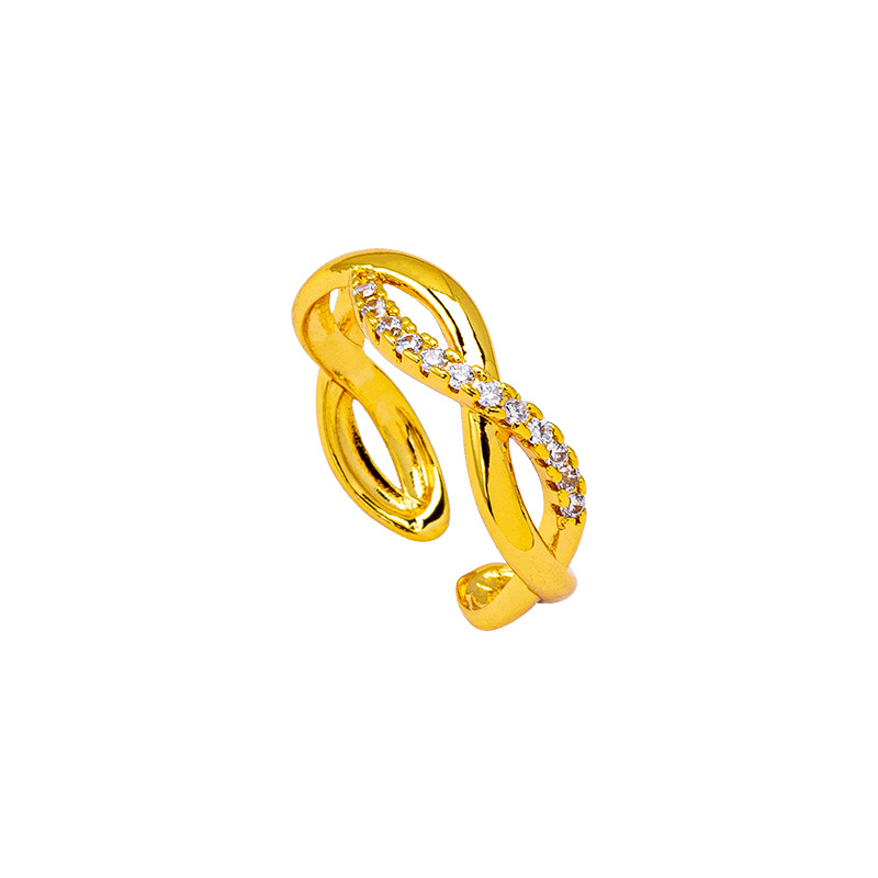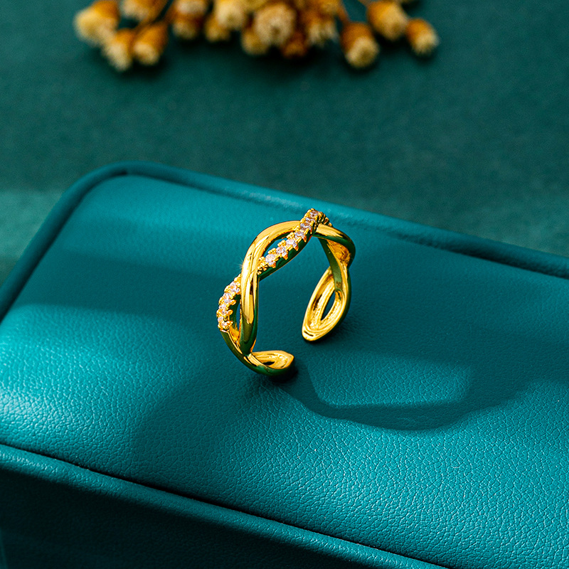 luxury vietnam placer gold lines cross index finger ring women's cross-border inlaid zirconium hollow ring small people do not fade for a long time ornament 中文版