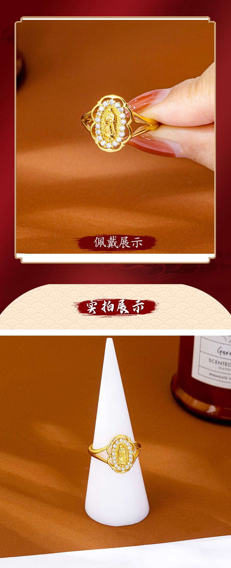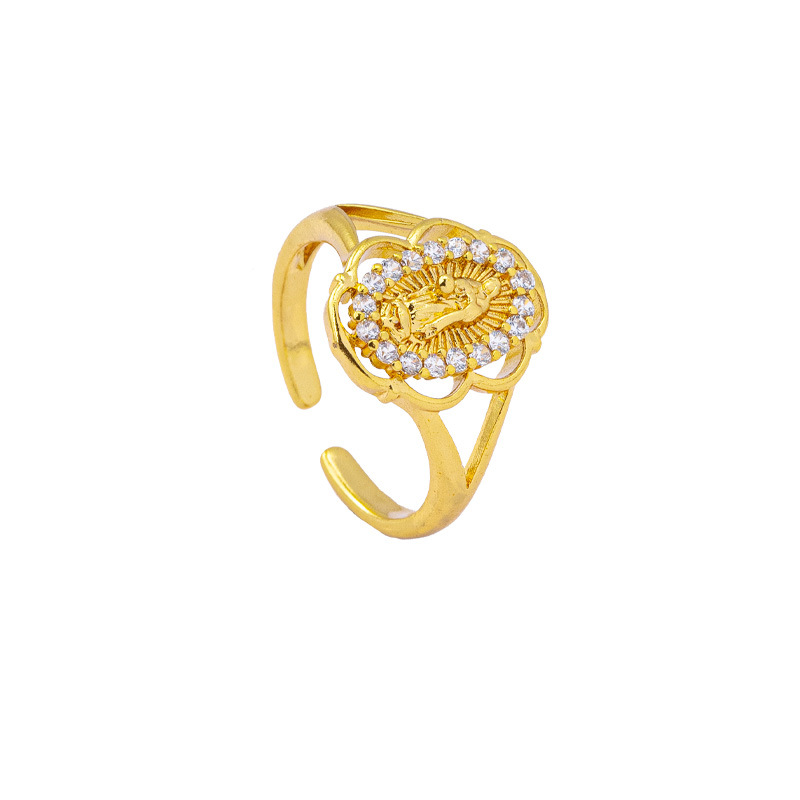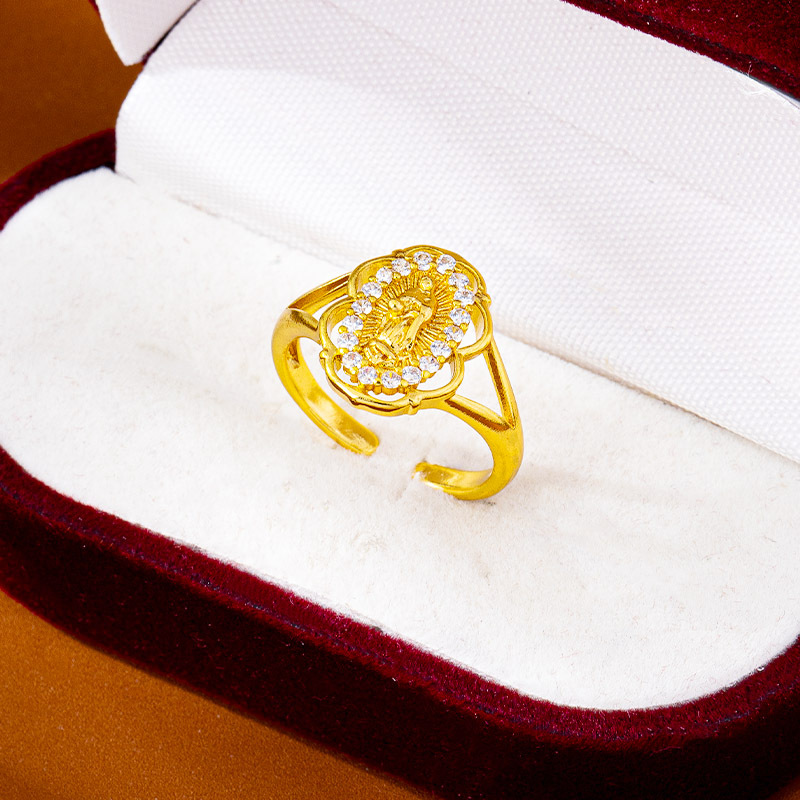 european and american style hollow lace diamond virgin ring women's light luxury vietnam placer gold ring cross-border no color fading ornament 中文版