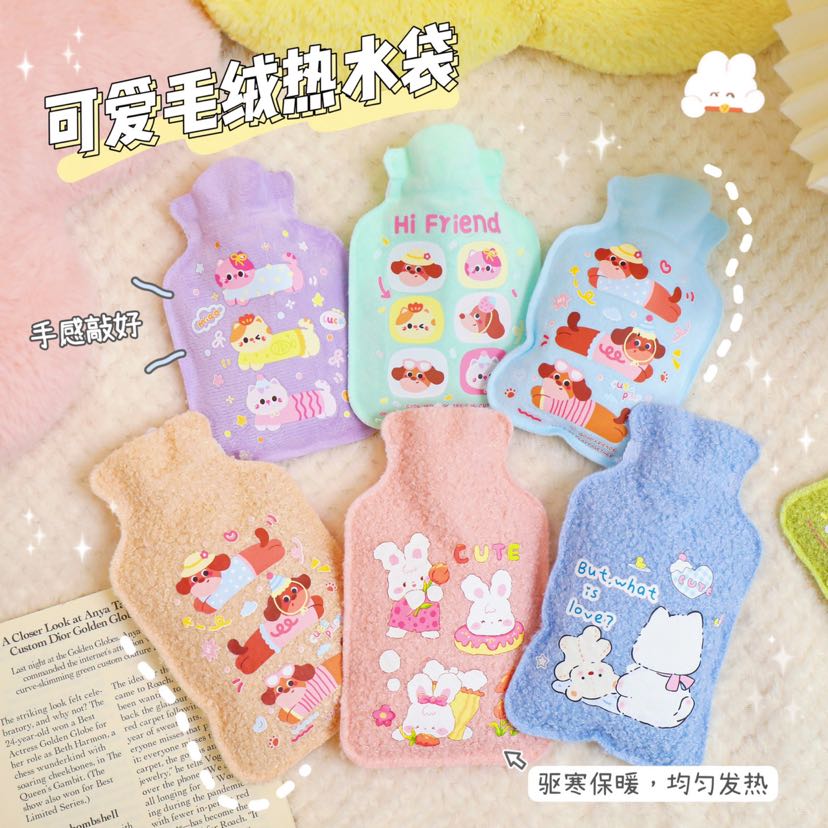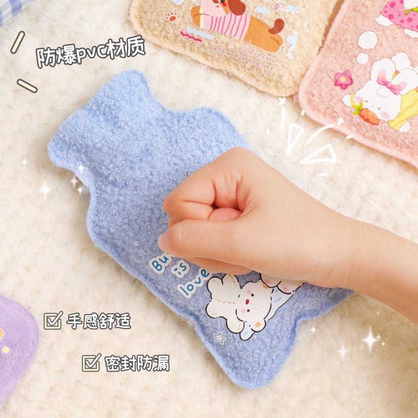 cartoon hot water injection bag portable student cute water heating product fleece-lined thickened long-lasting thermal hand warmer small size 中文版