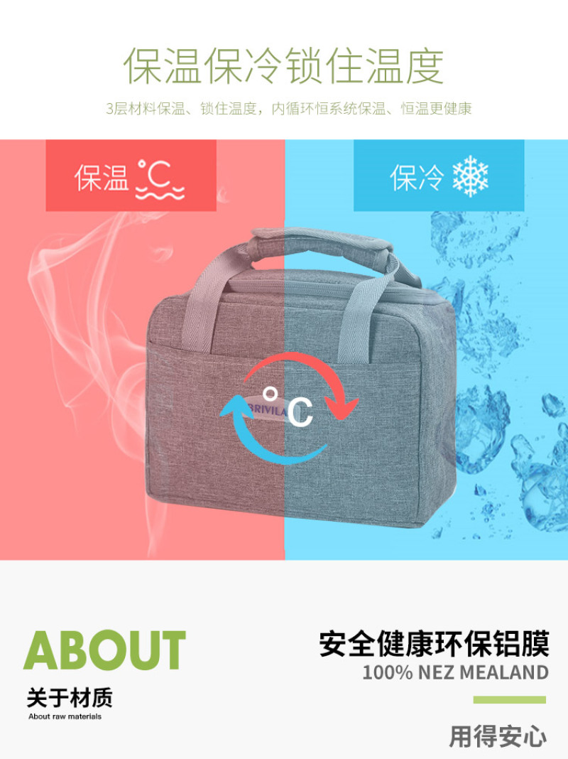 high-density cationic aluminum film material square portable lunch bag heat and cold insulation colors and styles 中文版