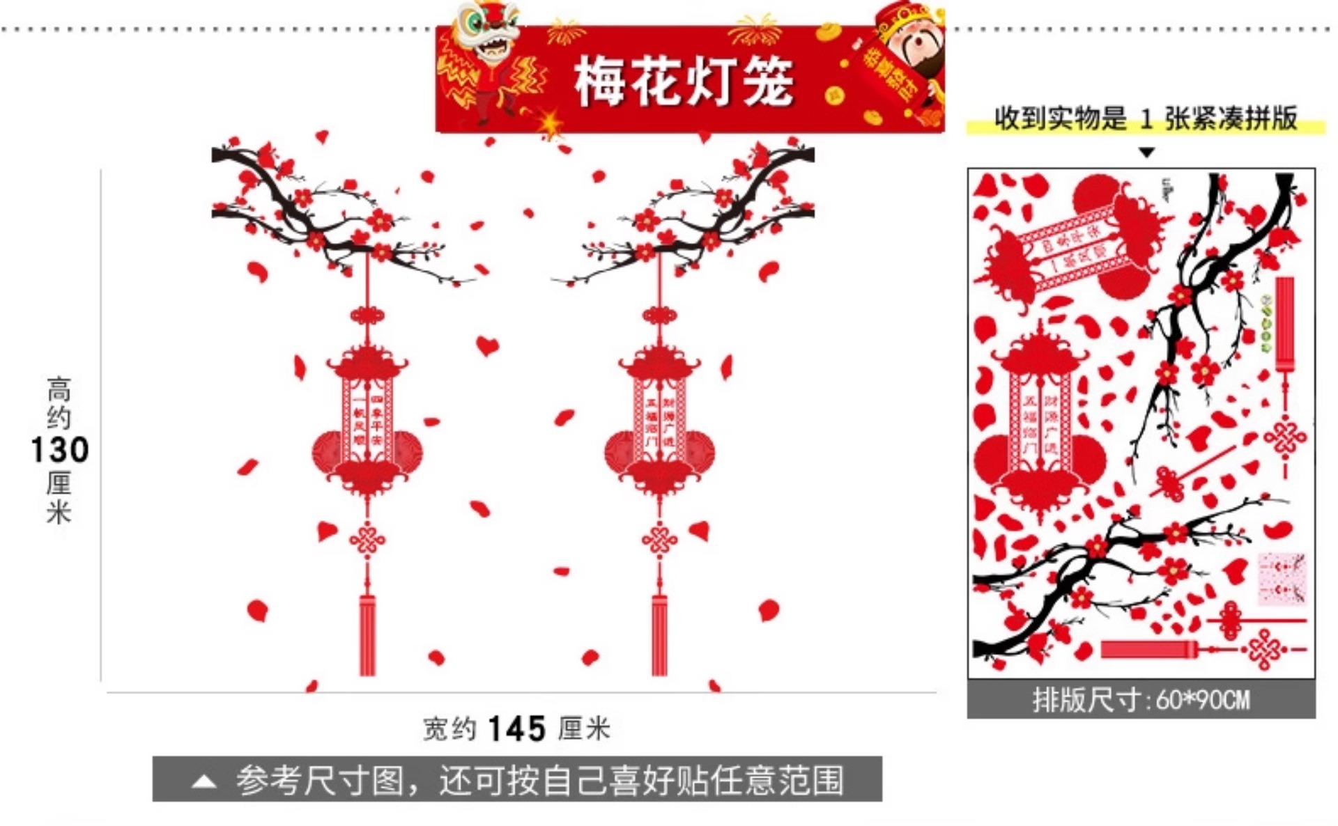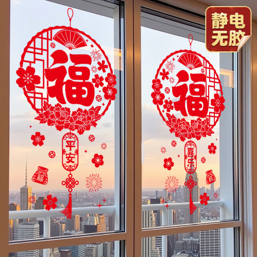 02. new year's fu character door sticker [glue-free static-double-sided same color]]