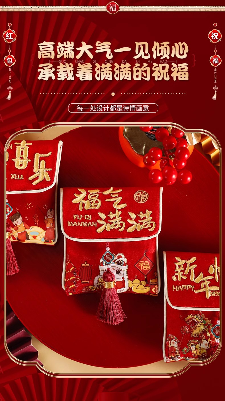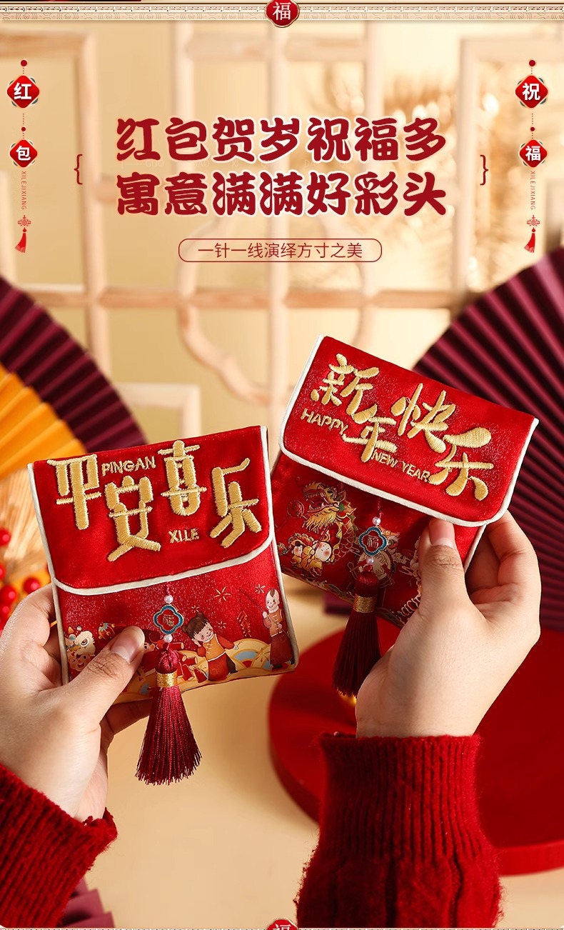 happy new year [cloth embroidery red envelope] without straps