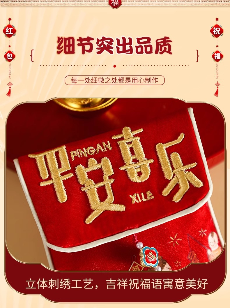 ping an xi le [cloth embroidery red envelope] without straps