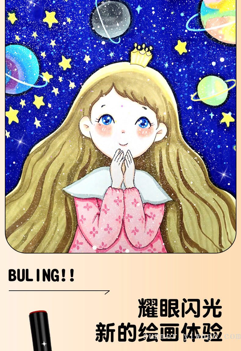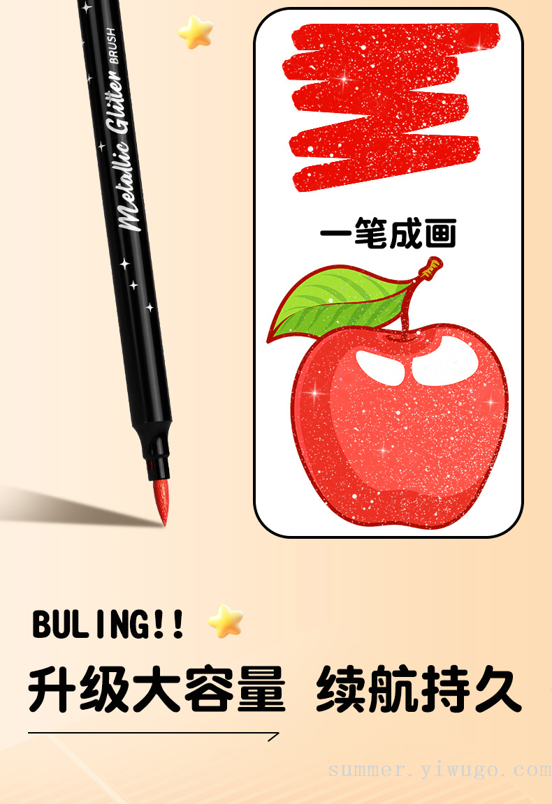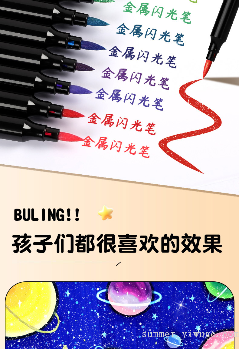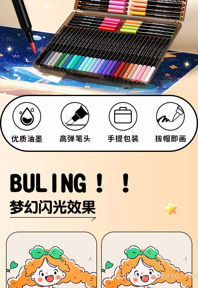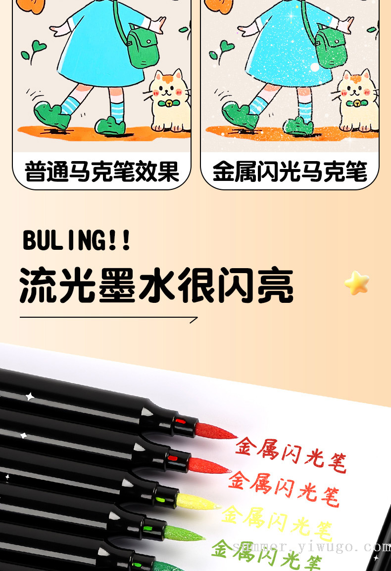flash small black box gold pearlescent marker package children's painting low grade soft head crayon art brush 中文版