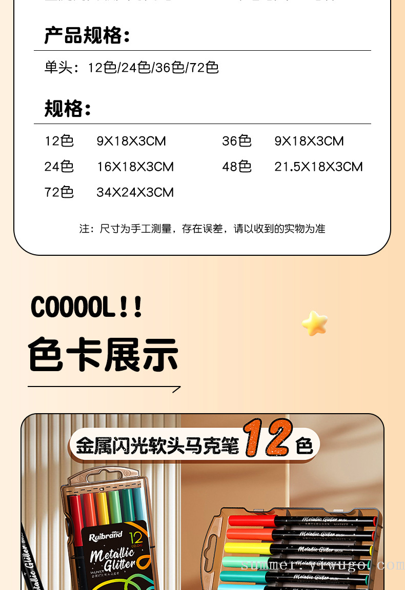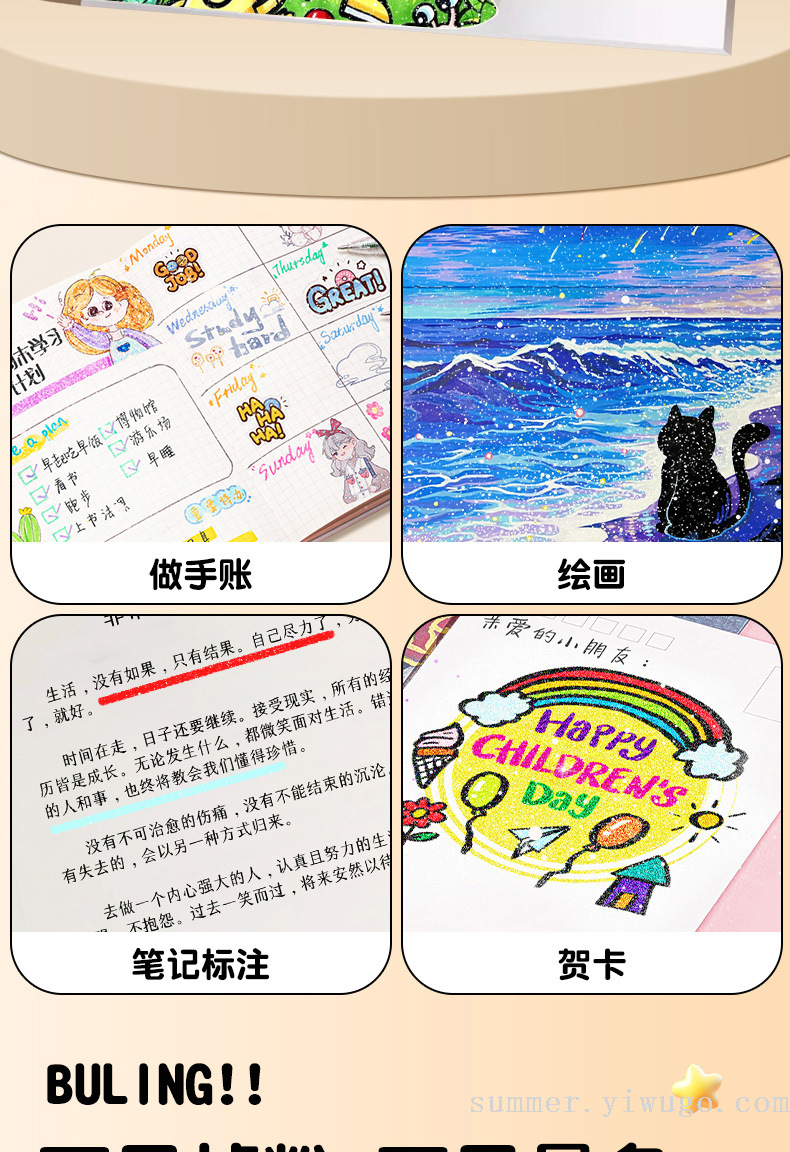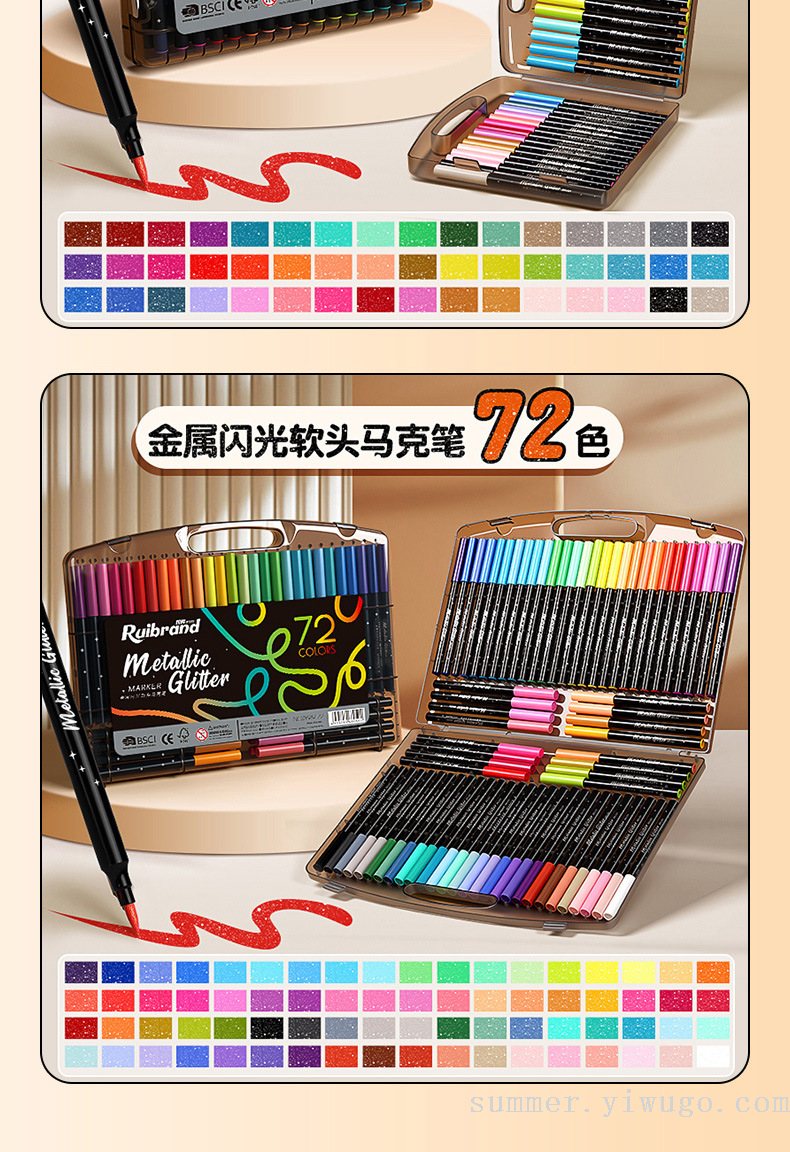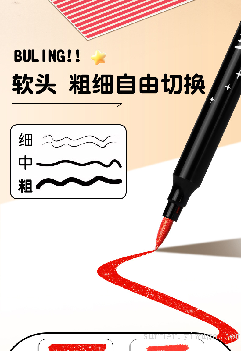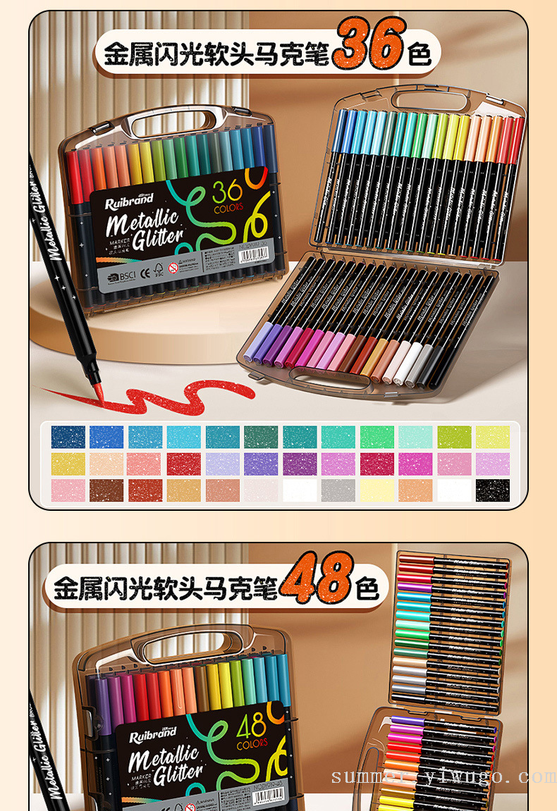 flash small black box gold pearlescent marker package children's painting low grade soft head crayon art brush 中文版