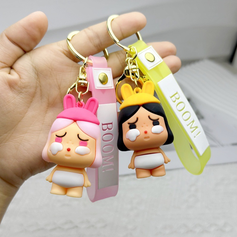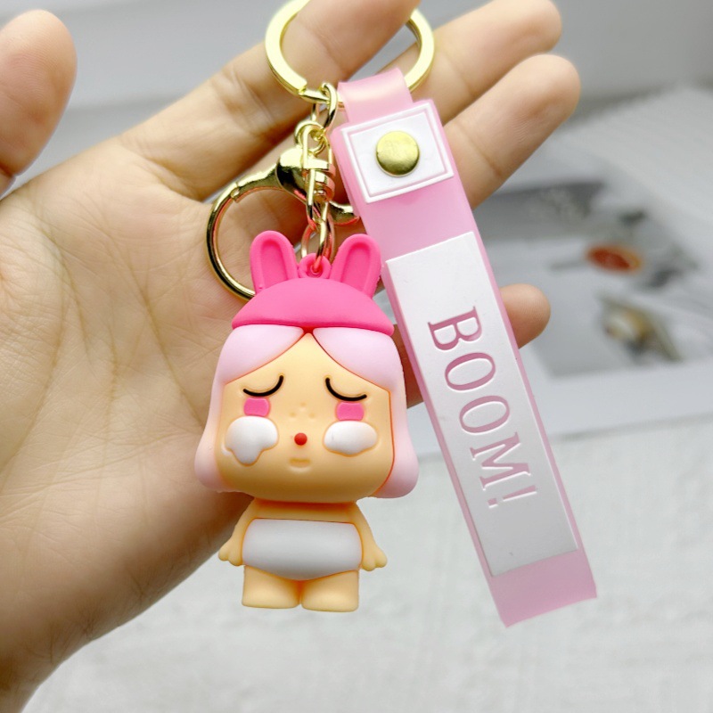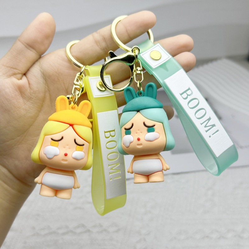 pink crying baby keychain