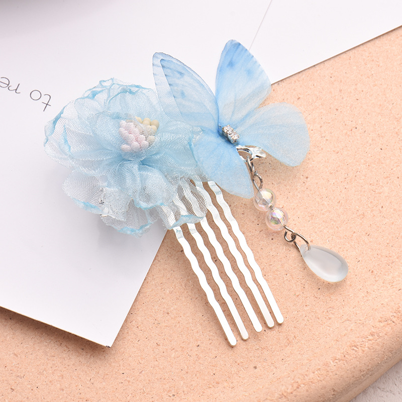 mesh butterfly hair comb beaded barrettes national fashion han chinese clothing accessories fabric side clip live supply headdress butterfly hair comb 中文版
