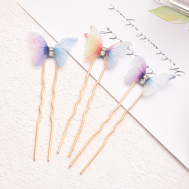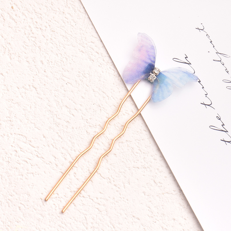 fresh butterfly hair clasp double-layer tulle butterfly hairpin hair ornaments cute purple and pink for girls blue national fashion headdress for han chinese clothing 中文版