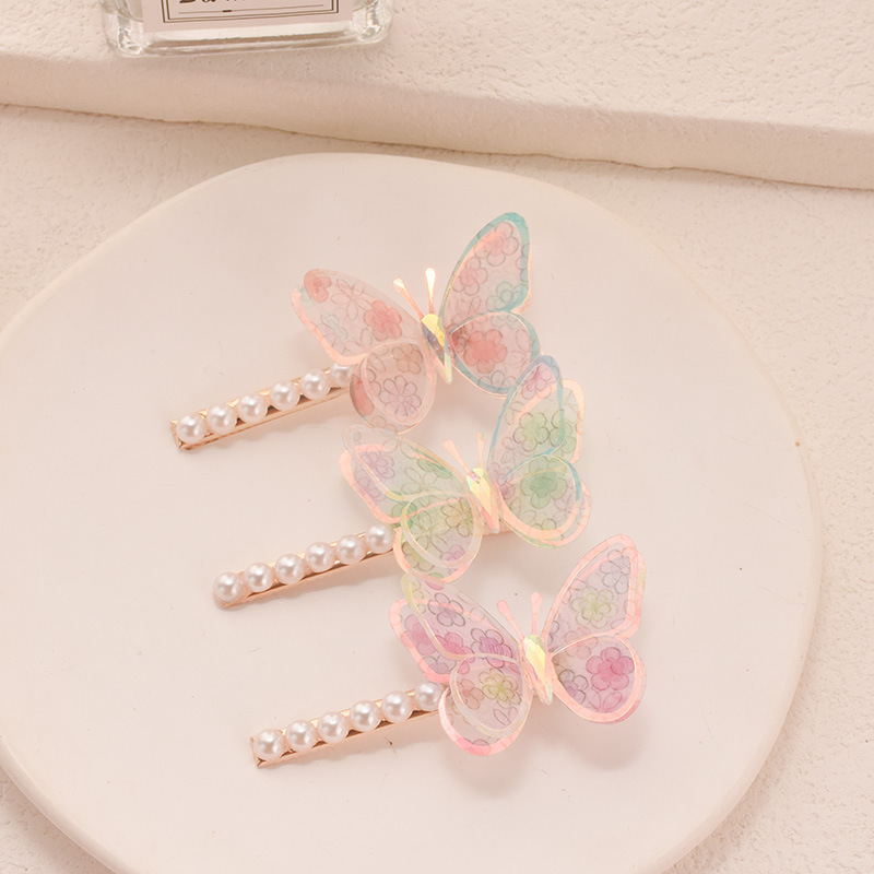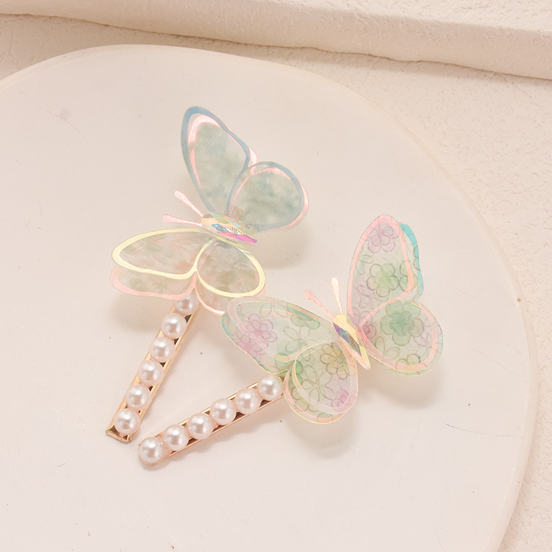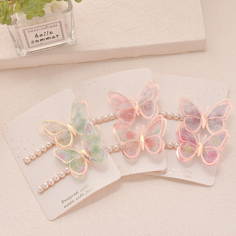 2025 new three-dimensional butterfly pearl barrettes super fairy double gradient butterfly hairpin high sense hair accessories wholesale 中文版