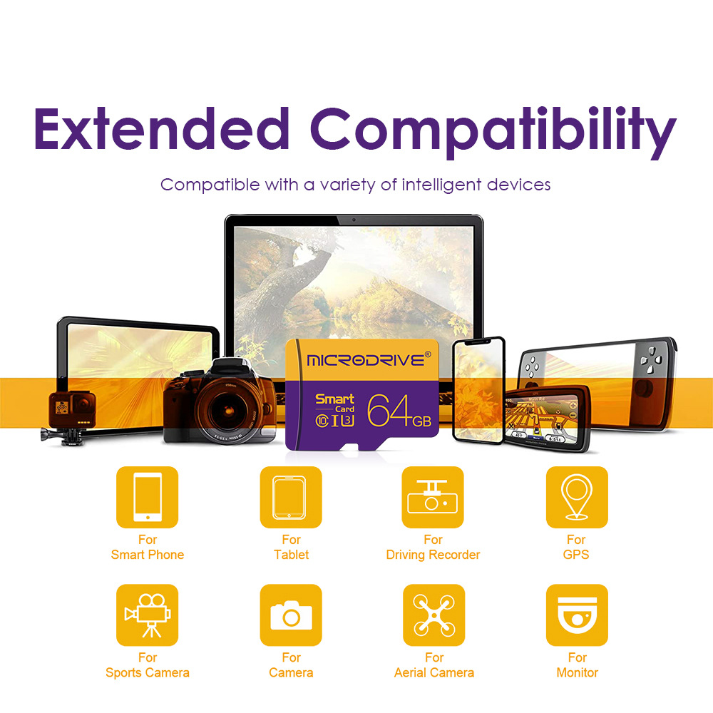 High Storage Capacity :MicroDriveMicro SD Card offers a massive storage capacity ranging from 8GB to 128GB, perfect for storing various files such as videos, photos, and documents.