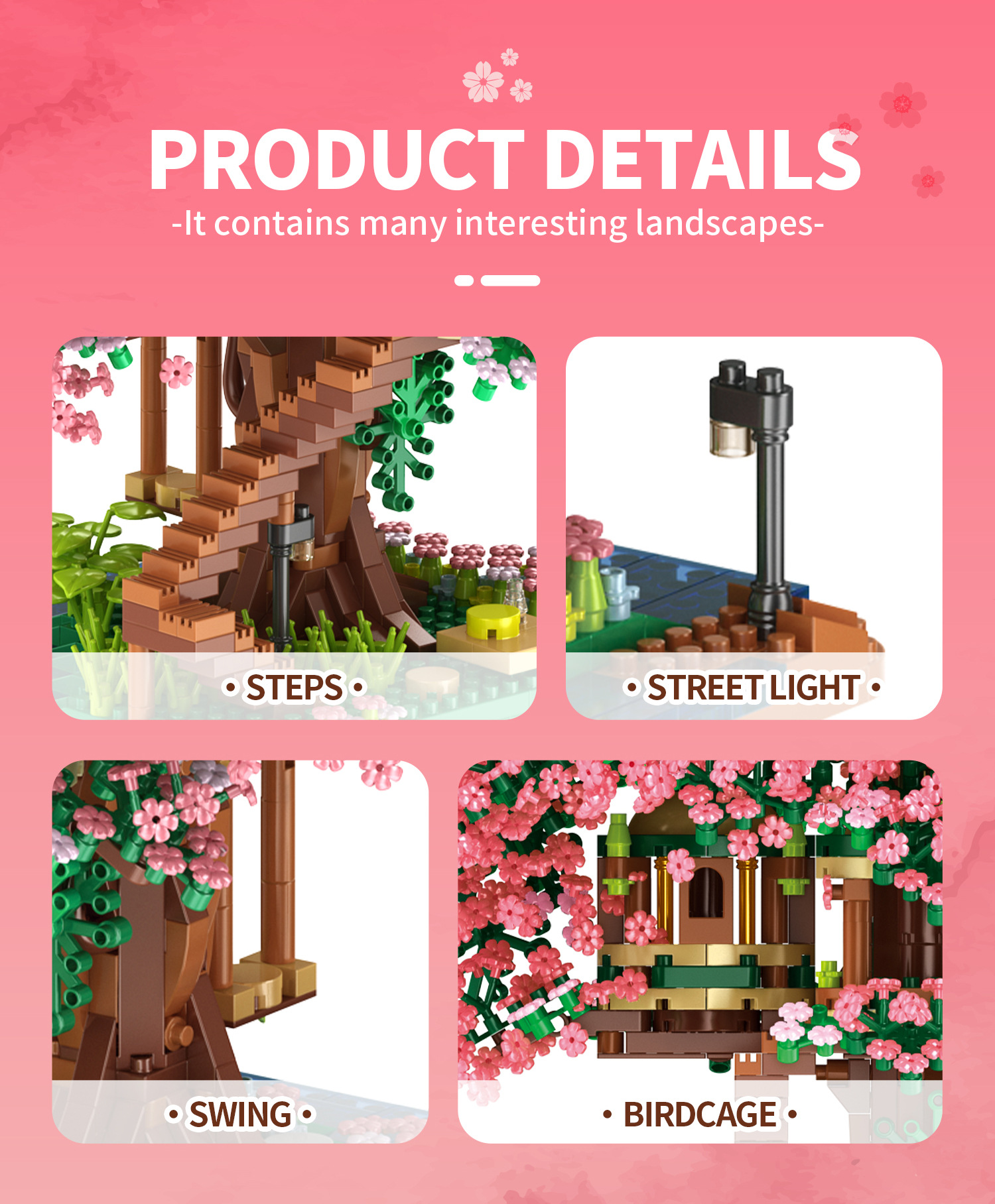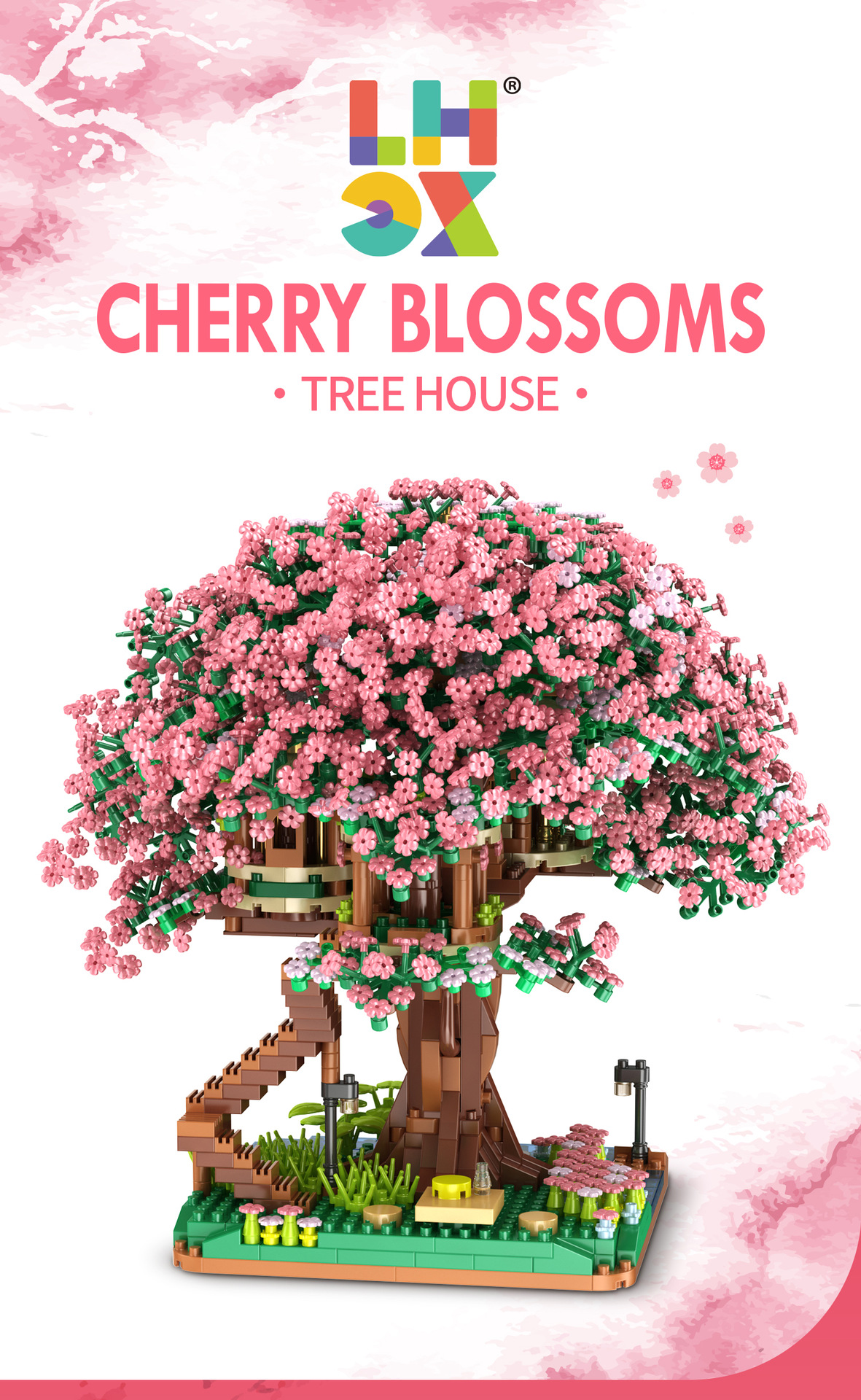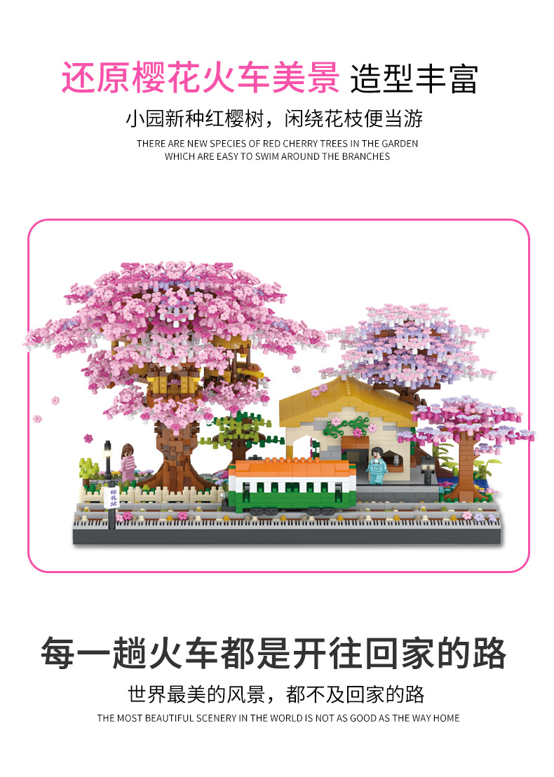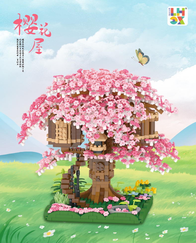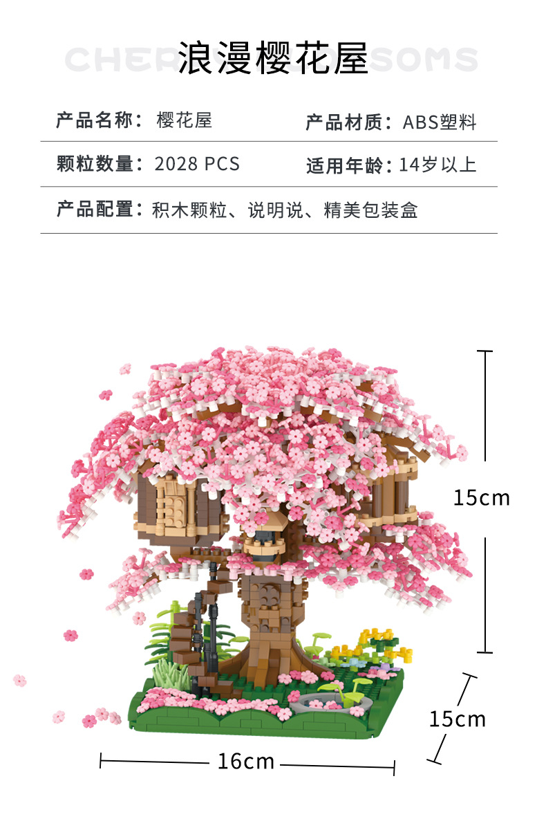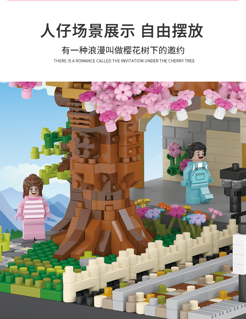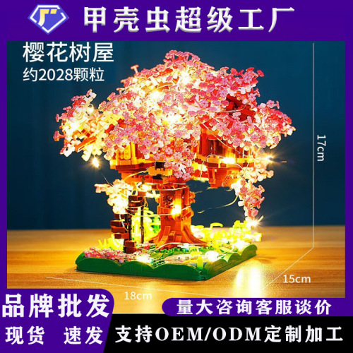 兼容乐高樱花树屋609微钻小颗粒积木花益智拼装玩具女生礼物批发跨境热销