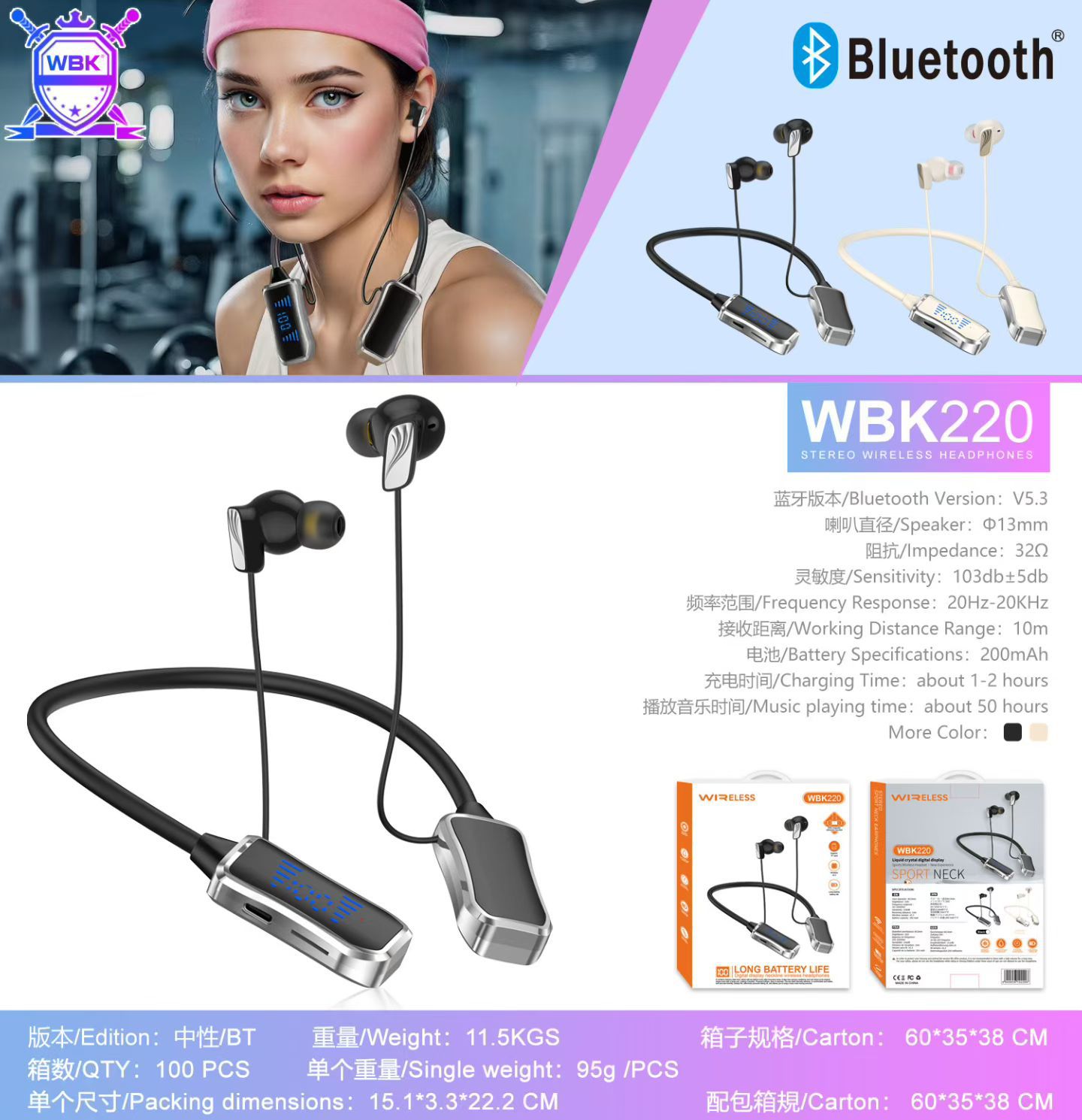 cross-border wbk220 halter bluetooth headset running business karaoke bluetooth wireless headset ultra-long standby wholesale