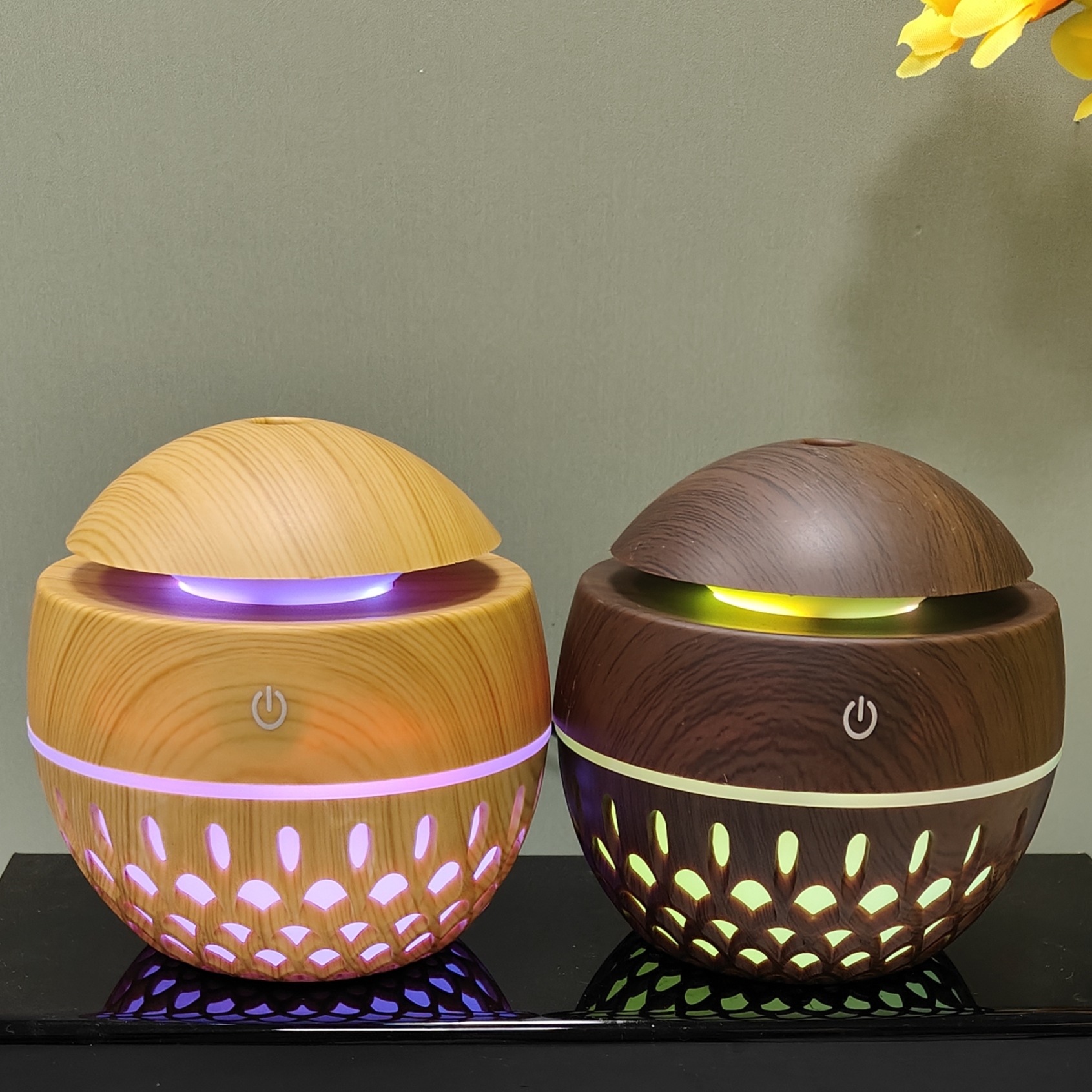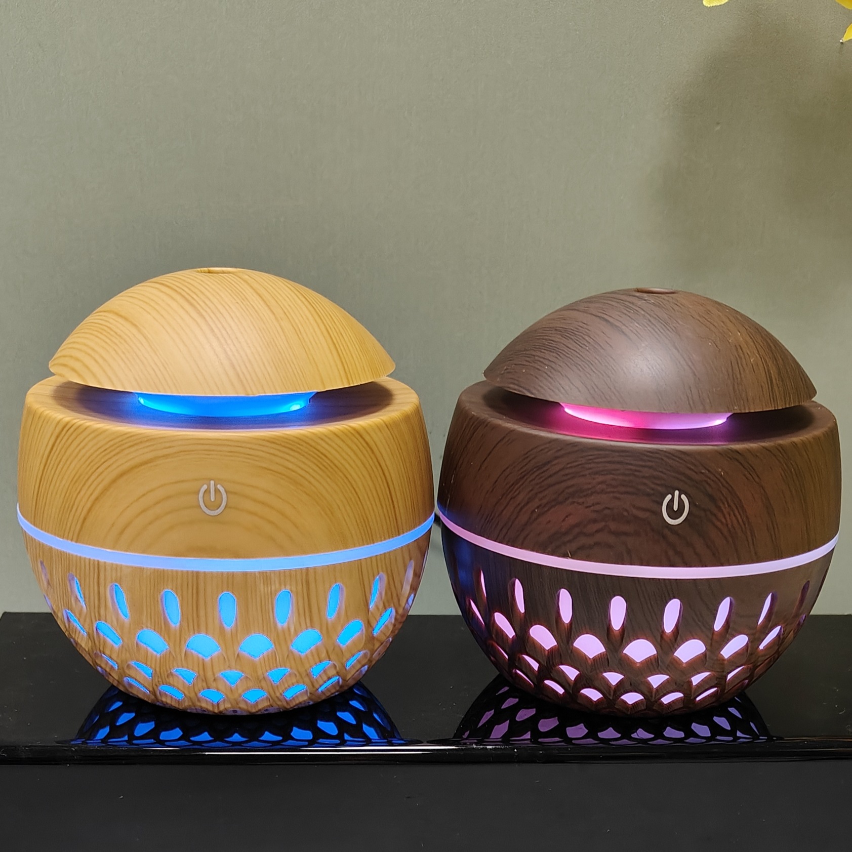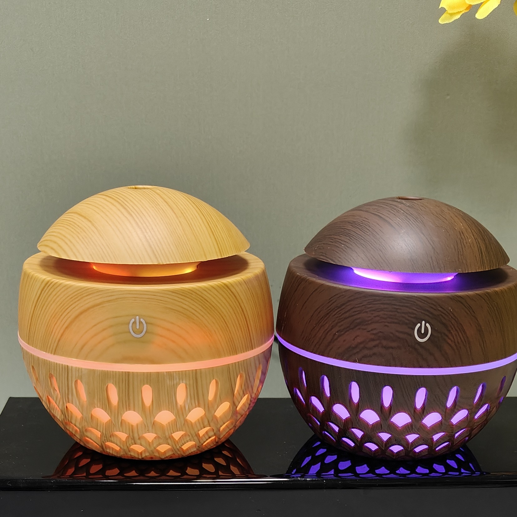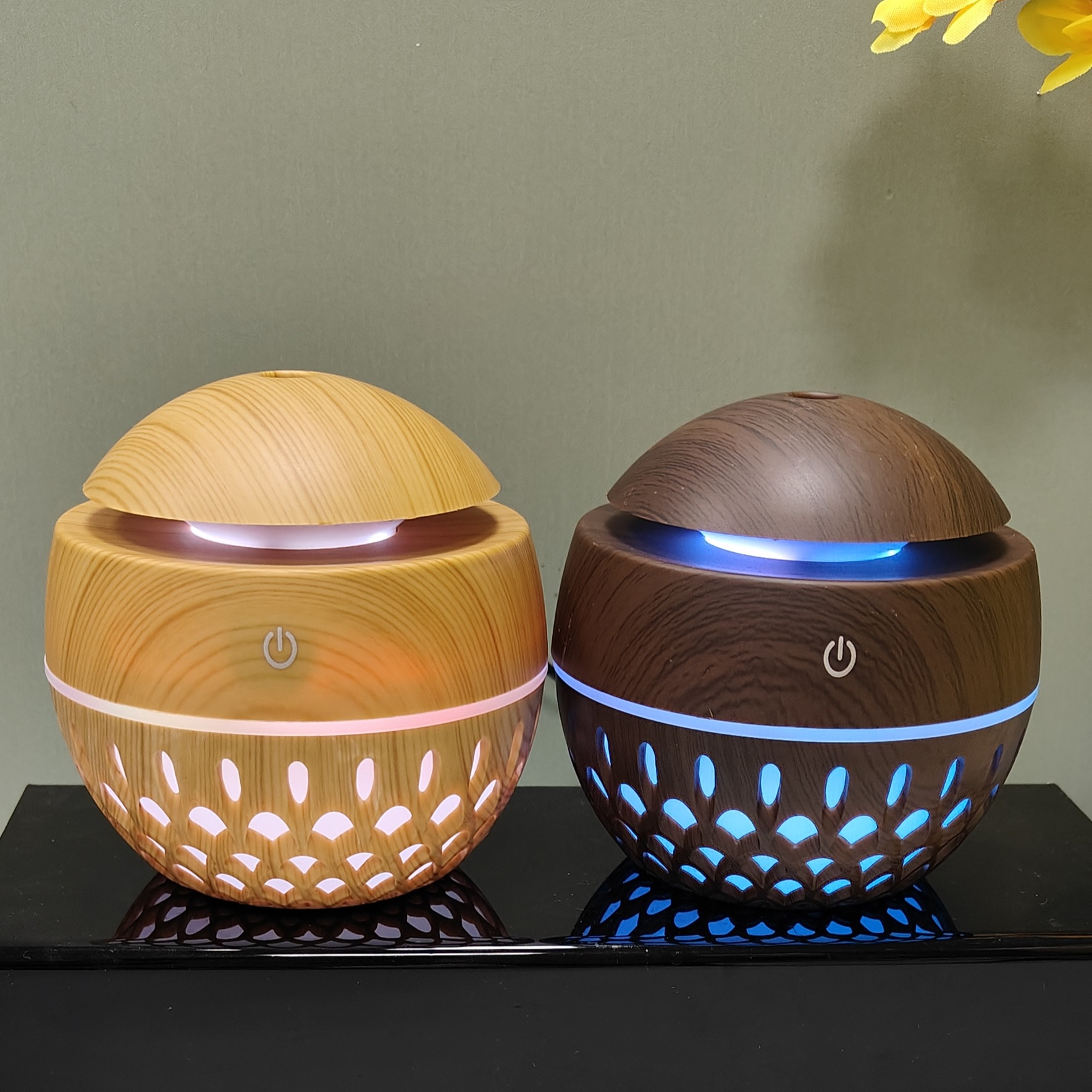 creative new 200ml hollow wood grain mushroom humidifier aroma diffuser cross-border gift wholesale office home 中文版