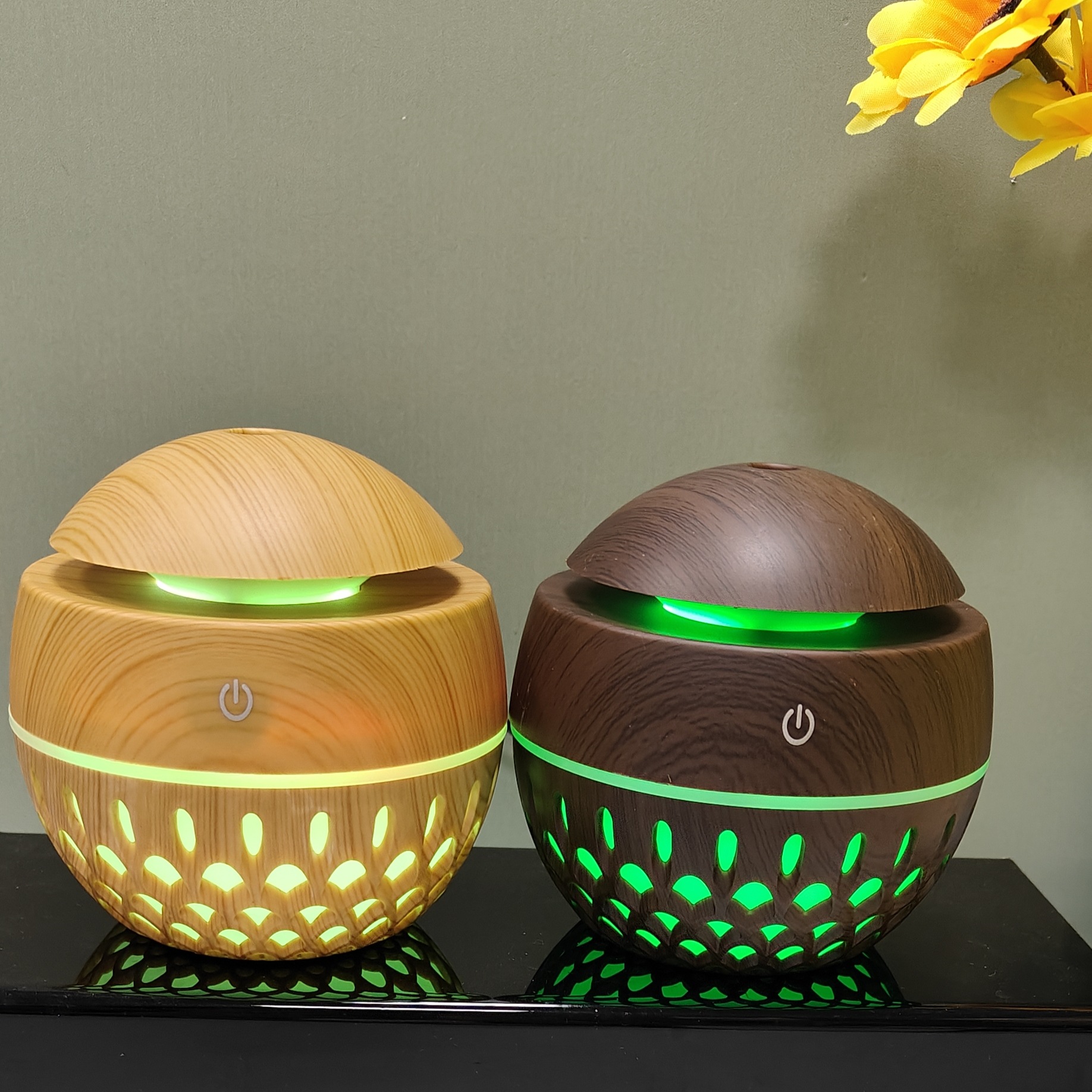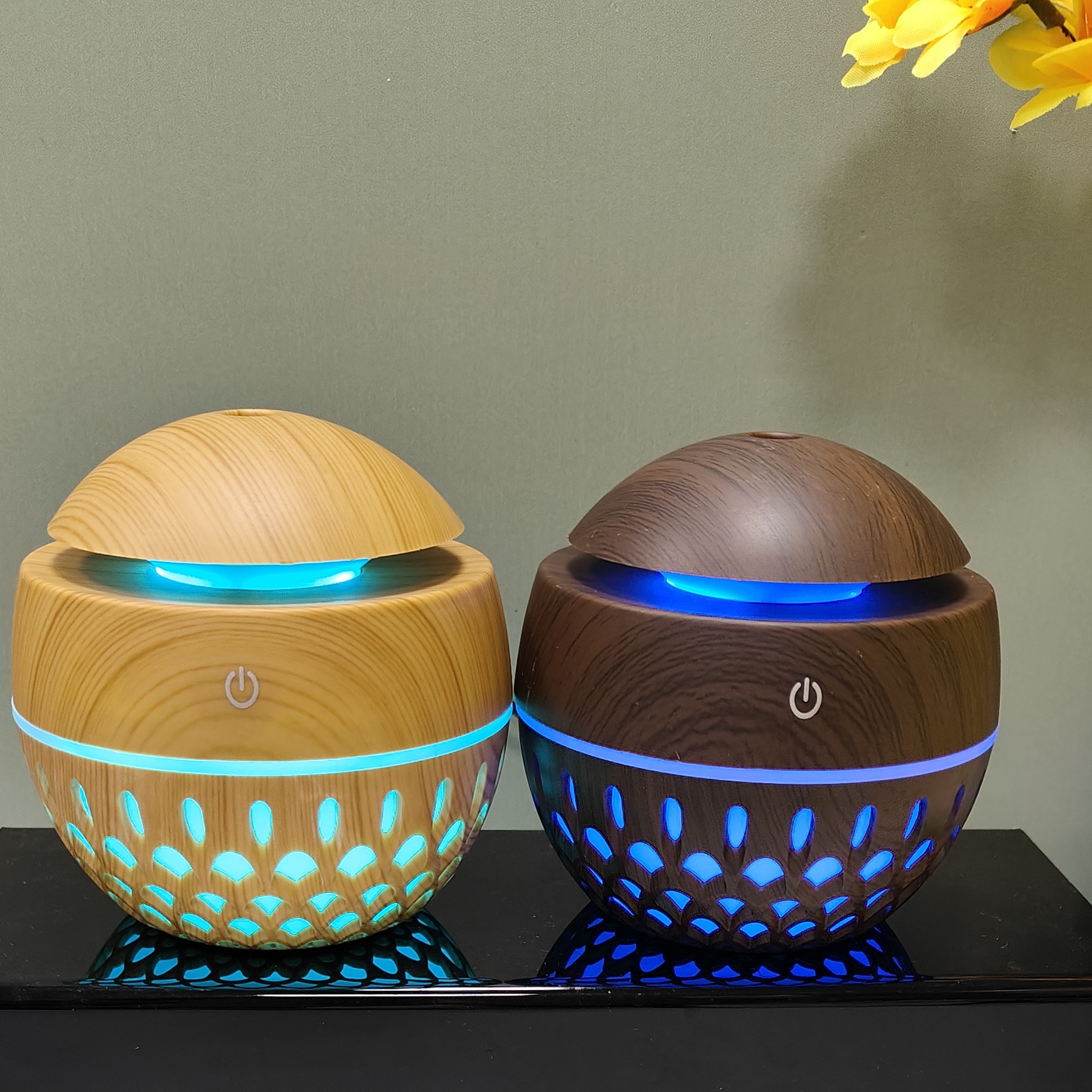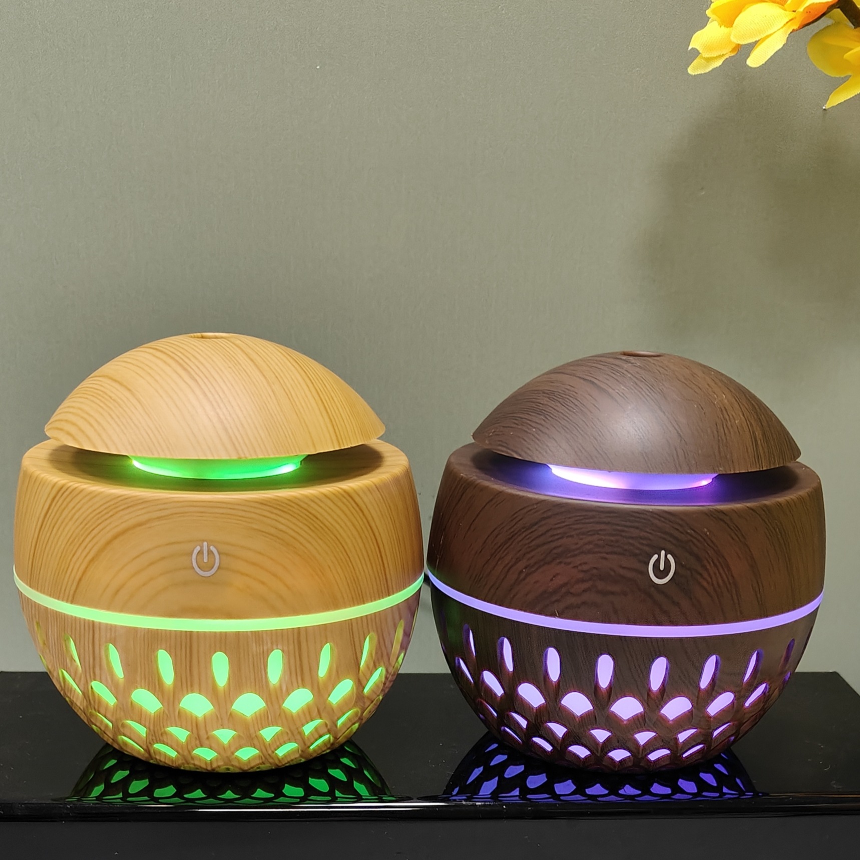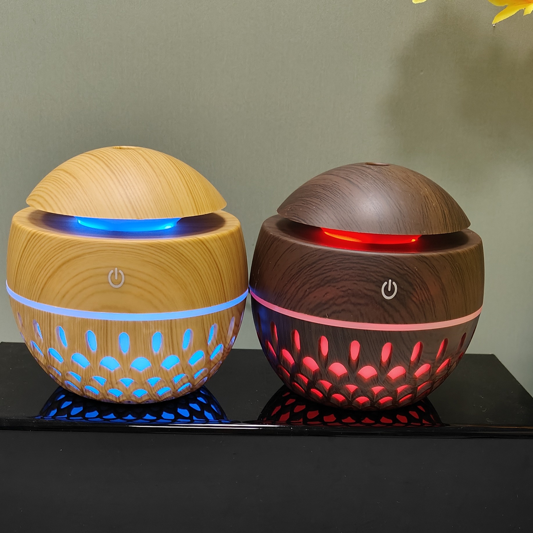 creative new 200ml hollow wood grain mushroom humidifier aroma diffuser cross-border gift wholesale office home 中文版