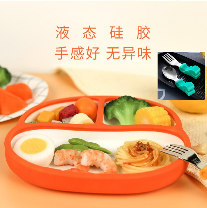 | liquid silicone dinner plate orange-white + dust cover + stainless steel spoon fork | ¥23.8 | 2132 piece available |
