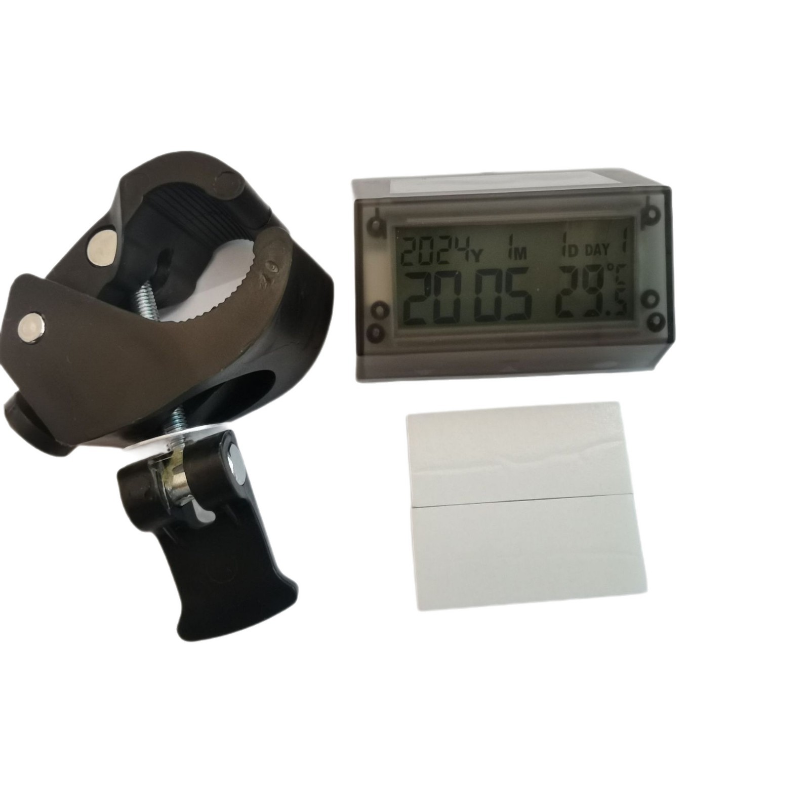 本产品可使用在汽车,摩托车,电单车等产品上。本产品正常安装后可以防雨(下大雨都没问题,但不可以浸泡在水中),防晒,防震,专业户外运动系列配备的产品,方便查看时间,温度,年,月,日,星期等信息。不用更换电池,白天太阳能板,有光线时自动充电,晚上车辆运动时,产品自动亮光。