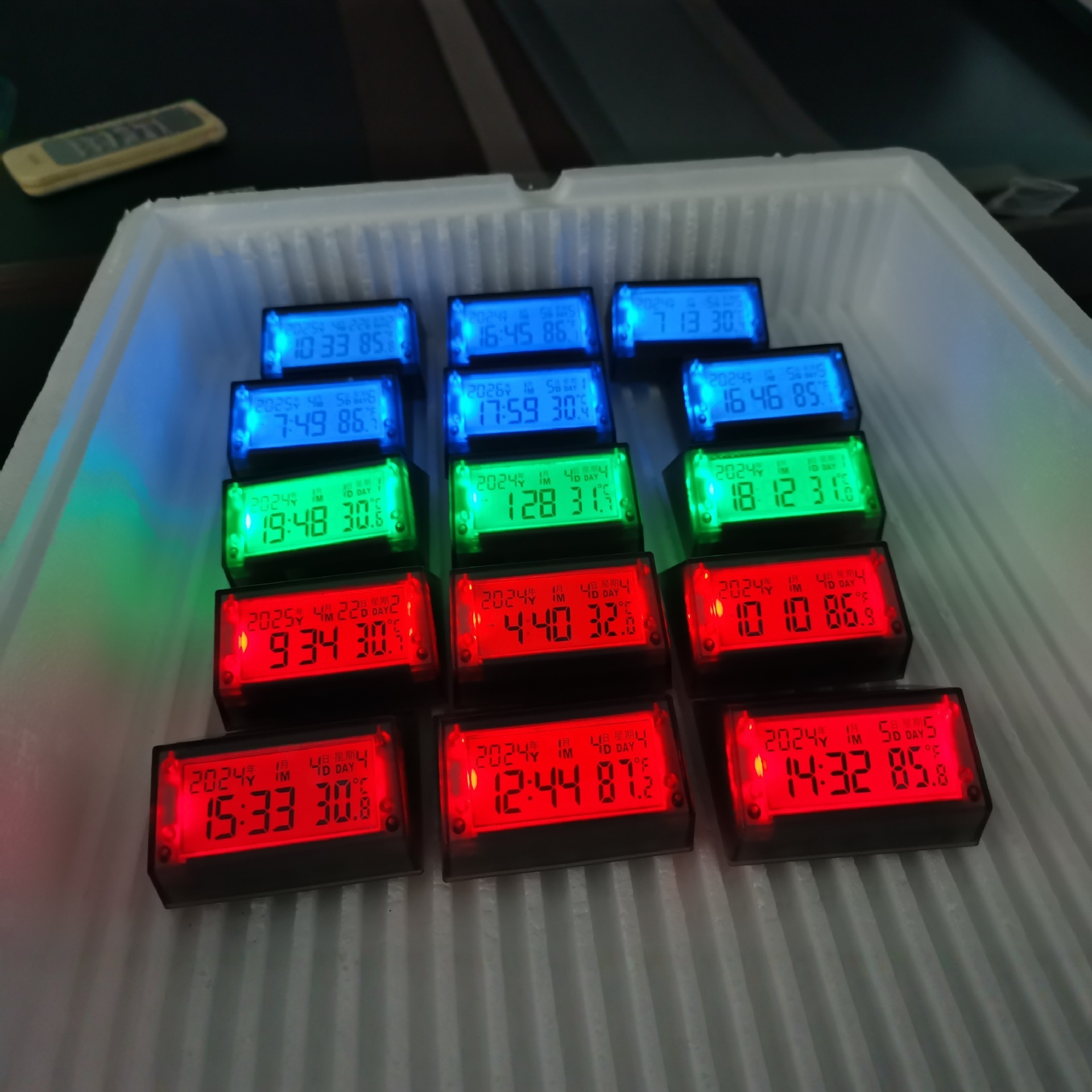车载太阳能智能自动背光温度日历时钟.防雨淋、防晒、防震.有光自动充电,不用电池。光线暗、车震动自动亮光 .