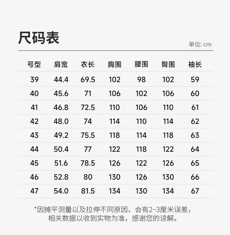 | 39 165cm 55kgs | ¥0.0 | 300 piece available |