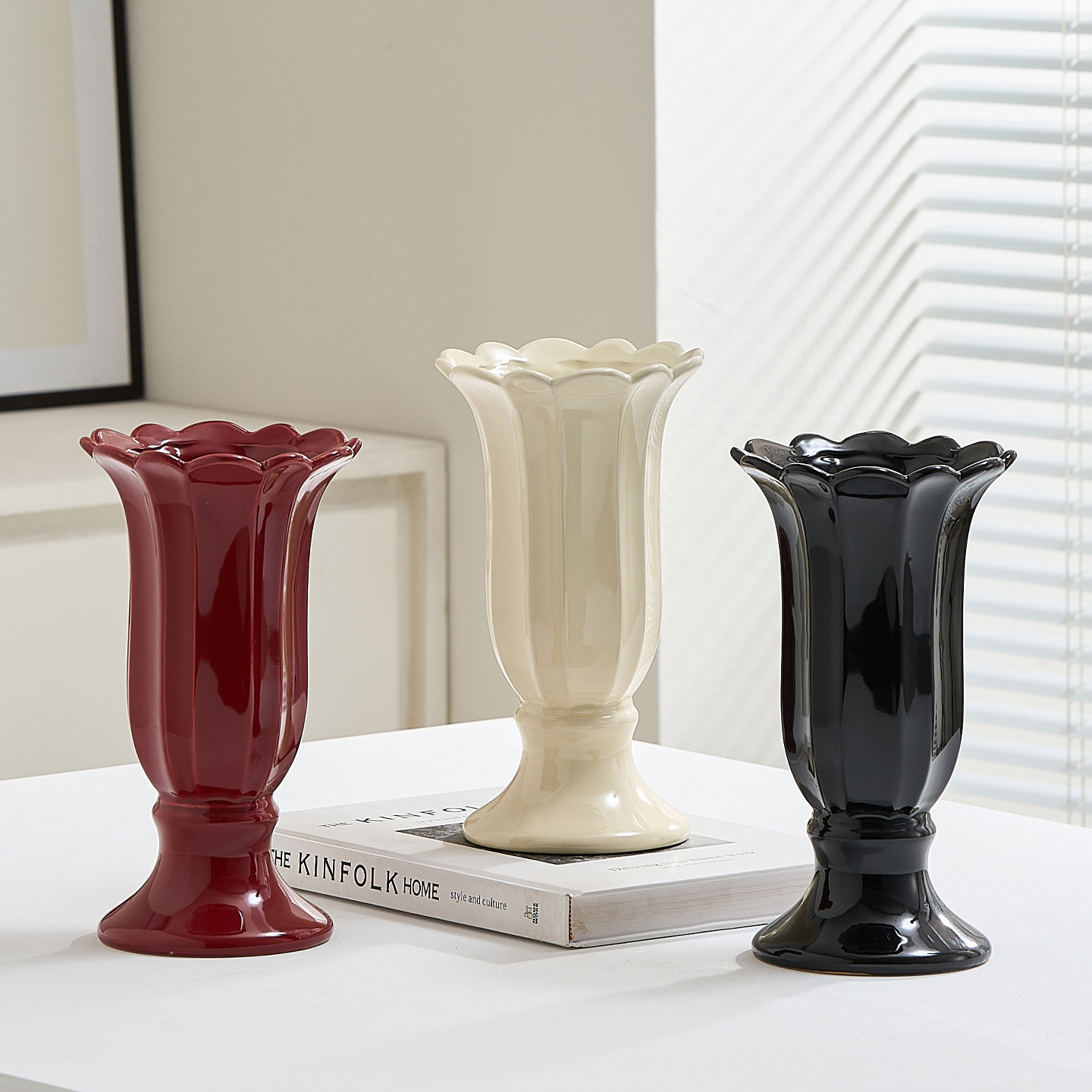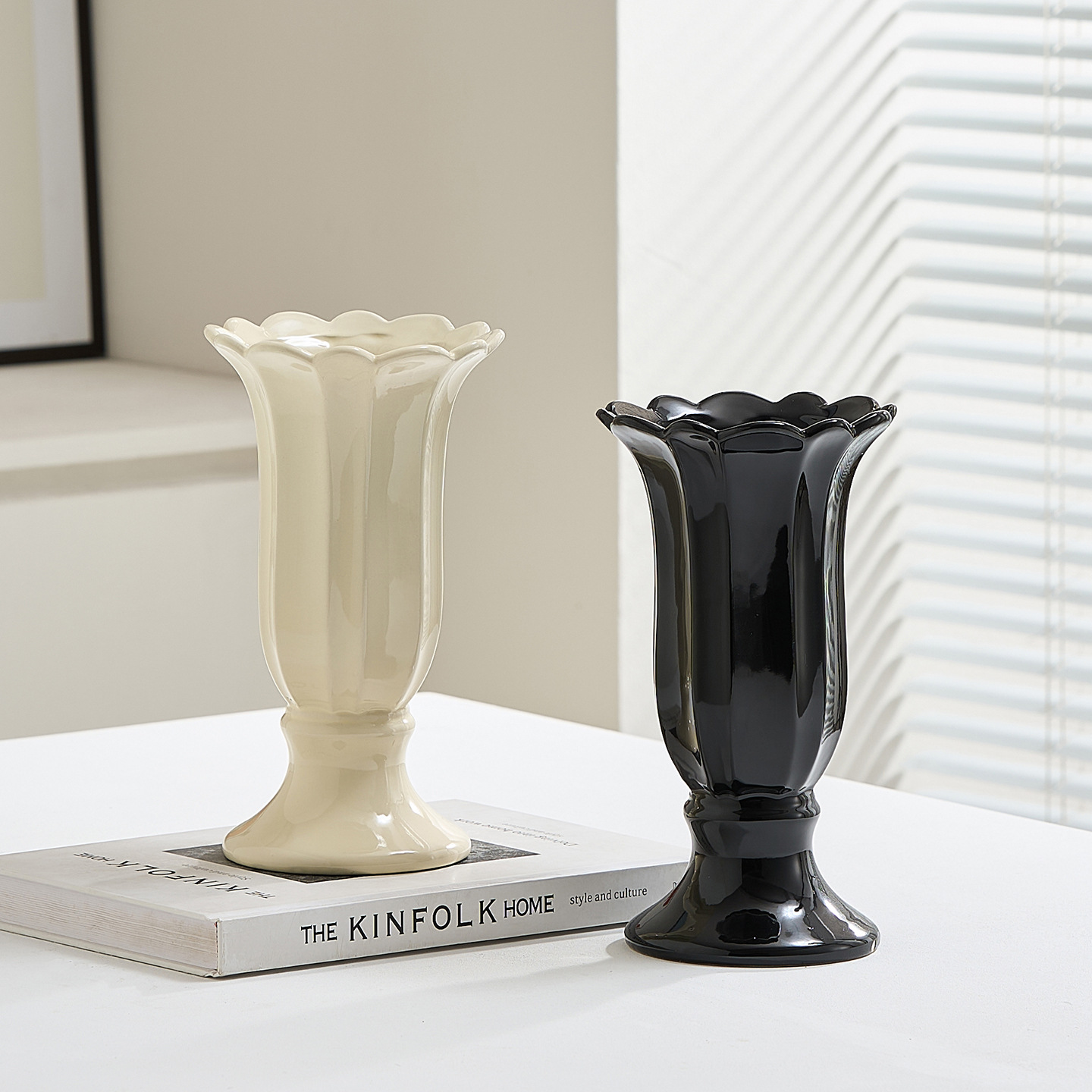 ceramic goblet vase-milky white
