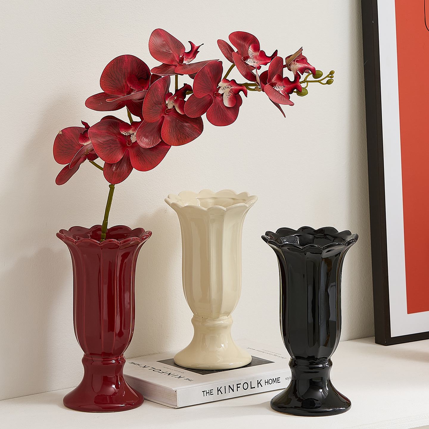 ceramic goblet vase-red