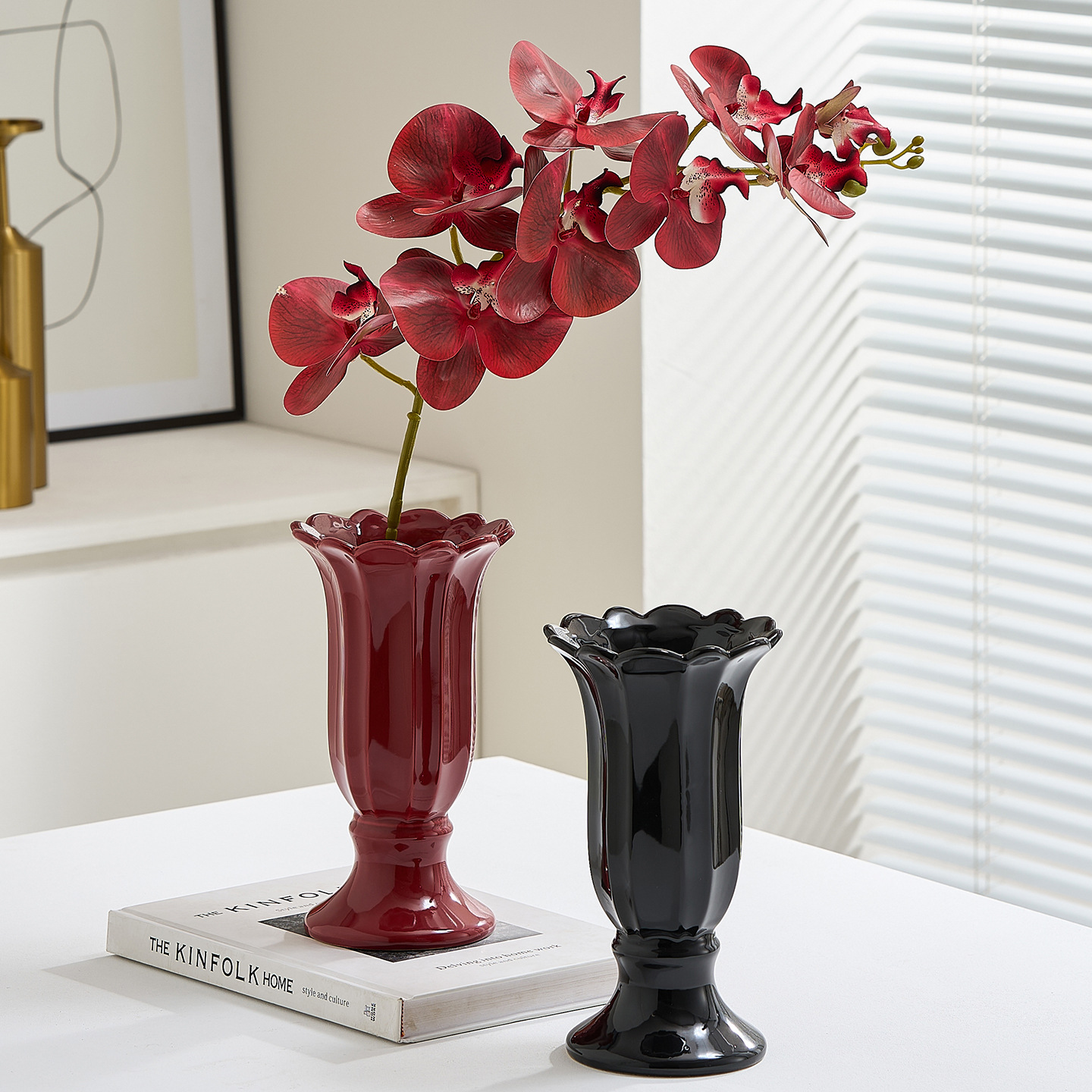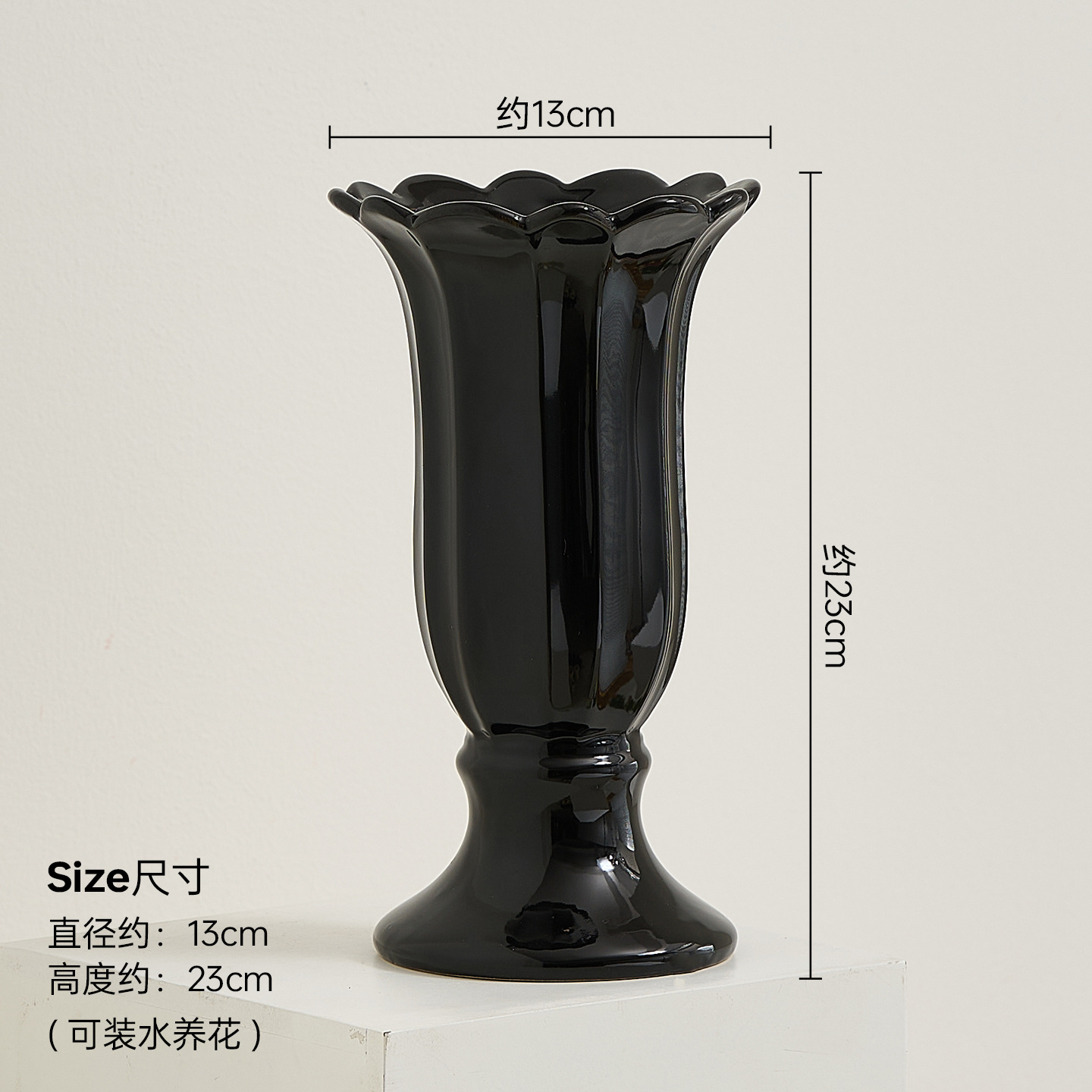 ceramic goblet vase-black