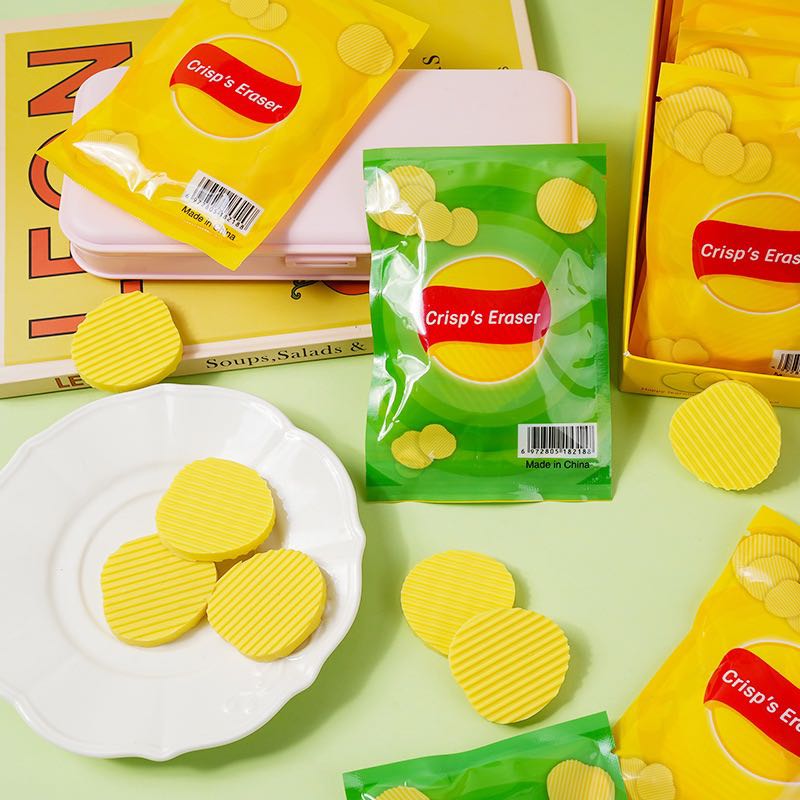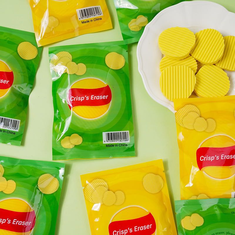 new creative bagged potato chips shape eraser clean and non-dandruff student stationery cultural creative small gift prize easy to use 中文版