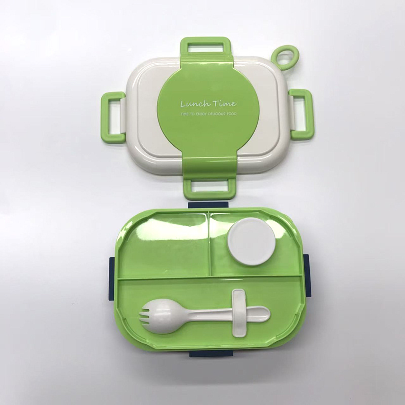contrast color three-grid separated lunch box comes with tableware sealed lunch box student office worker portable lunch crisper 中文版