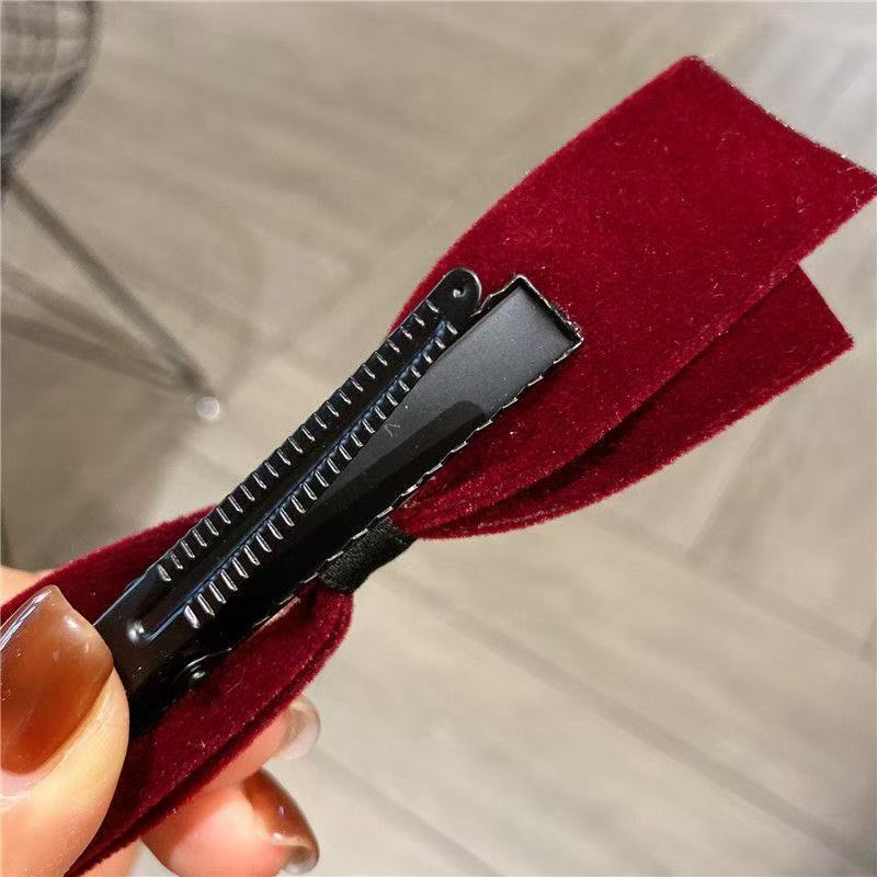 autumn and winter new velvet bow duckbill barrettes female back head 2025 girl high sense hair accessories side clip 中文版