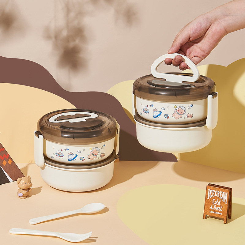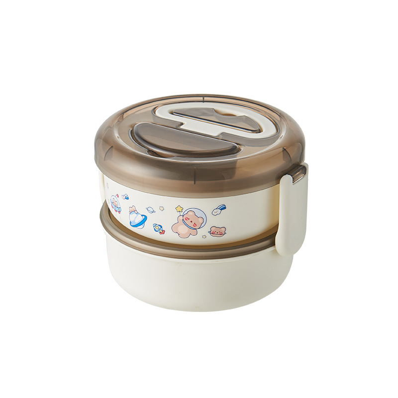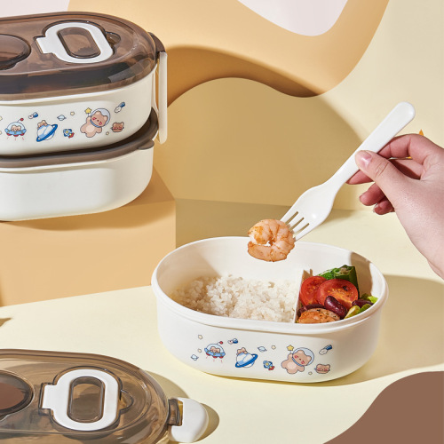 [space bear] double-layer detachable lunch box student portable lunch box with spoon fork compartment lunch box 中文版