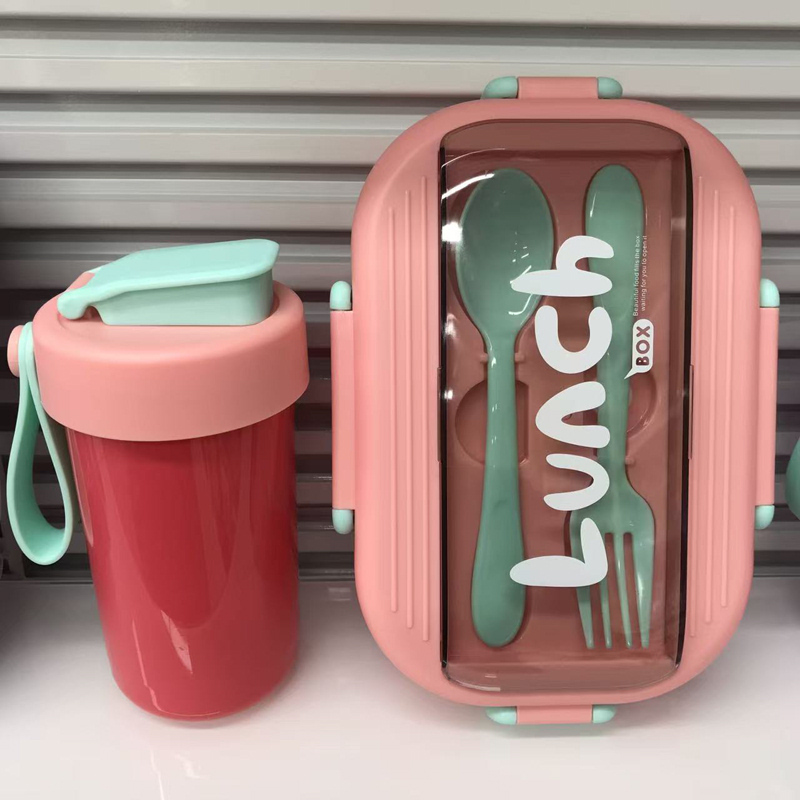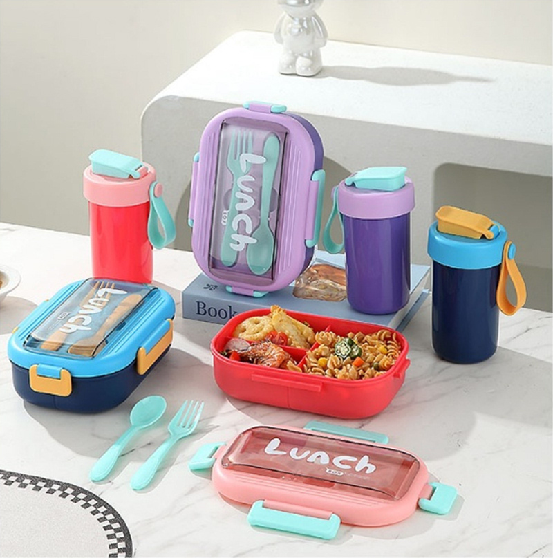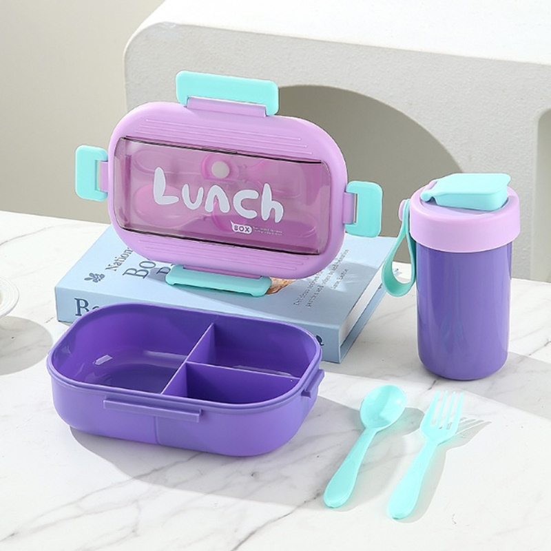 children's lunch box water cup tableware three-piece multi-color separated sealed lunch box student portable lunch box with spoon fork combination 中文版