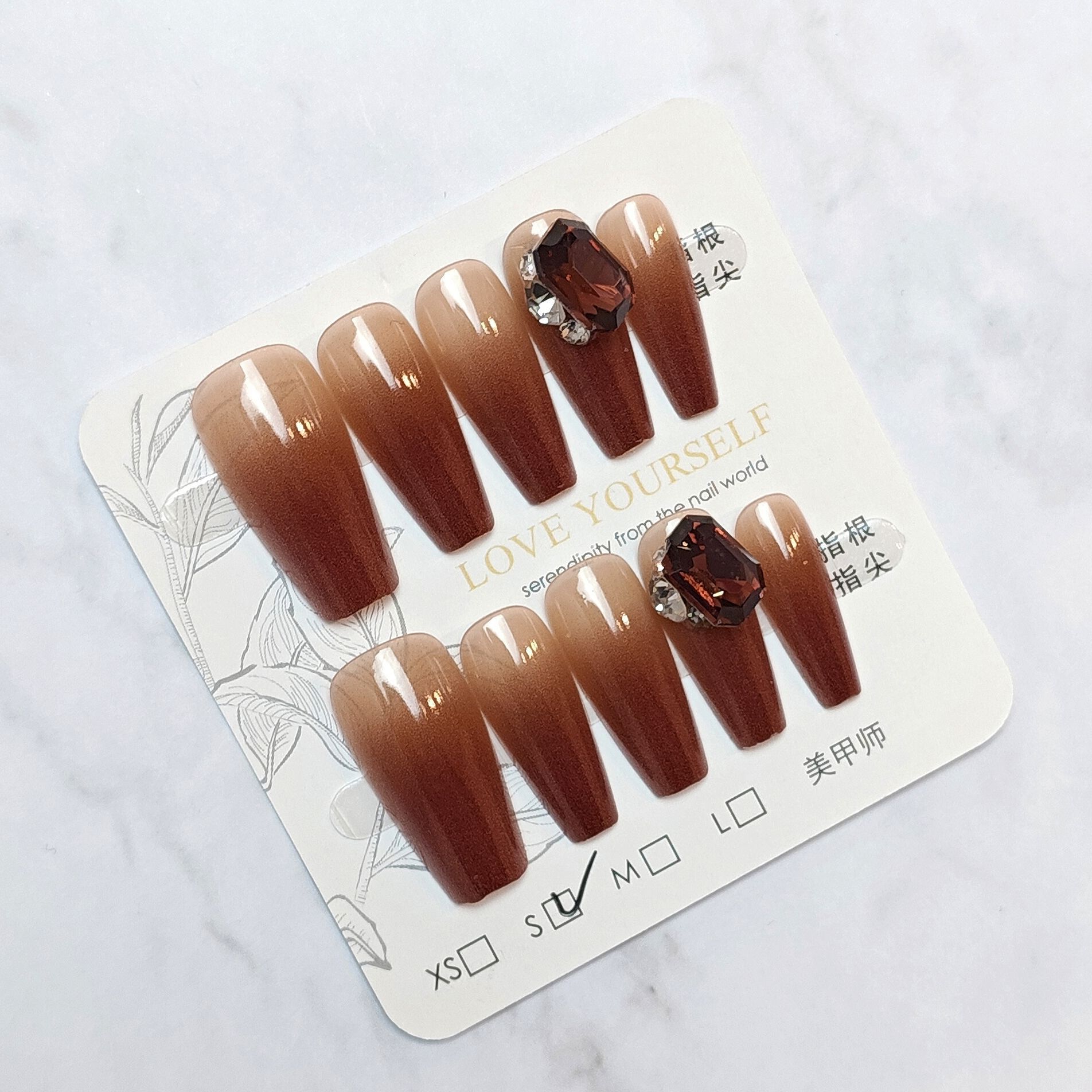 sp-214 cinnabar red halo 10 pieces phototherapy handmade wear nail caramel autumn and winter square diamond finished product nail tips wholesale 中文版
