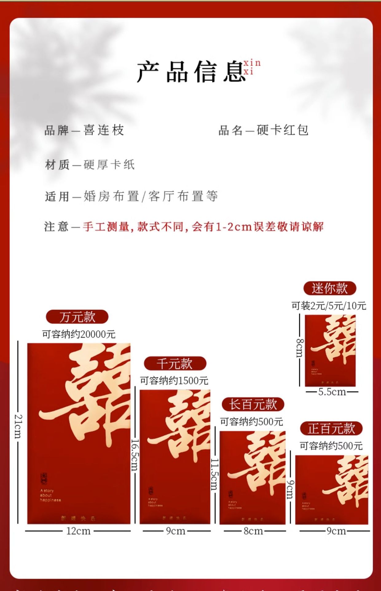 | mini red packet [50] 8*5.5cm | ¥3.42 | 9636 piece available |