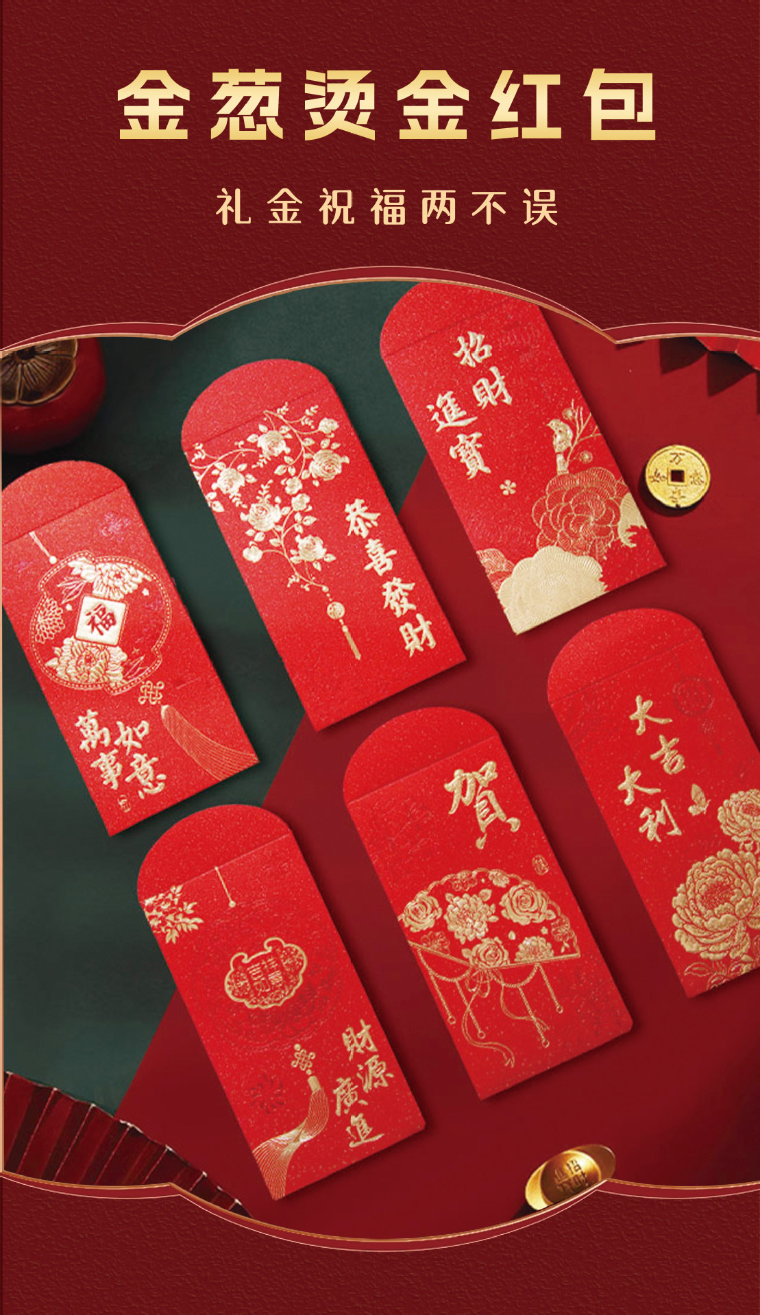high-end gold leaf red common use red packet (fortune)