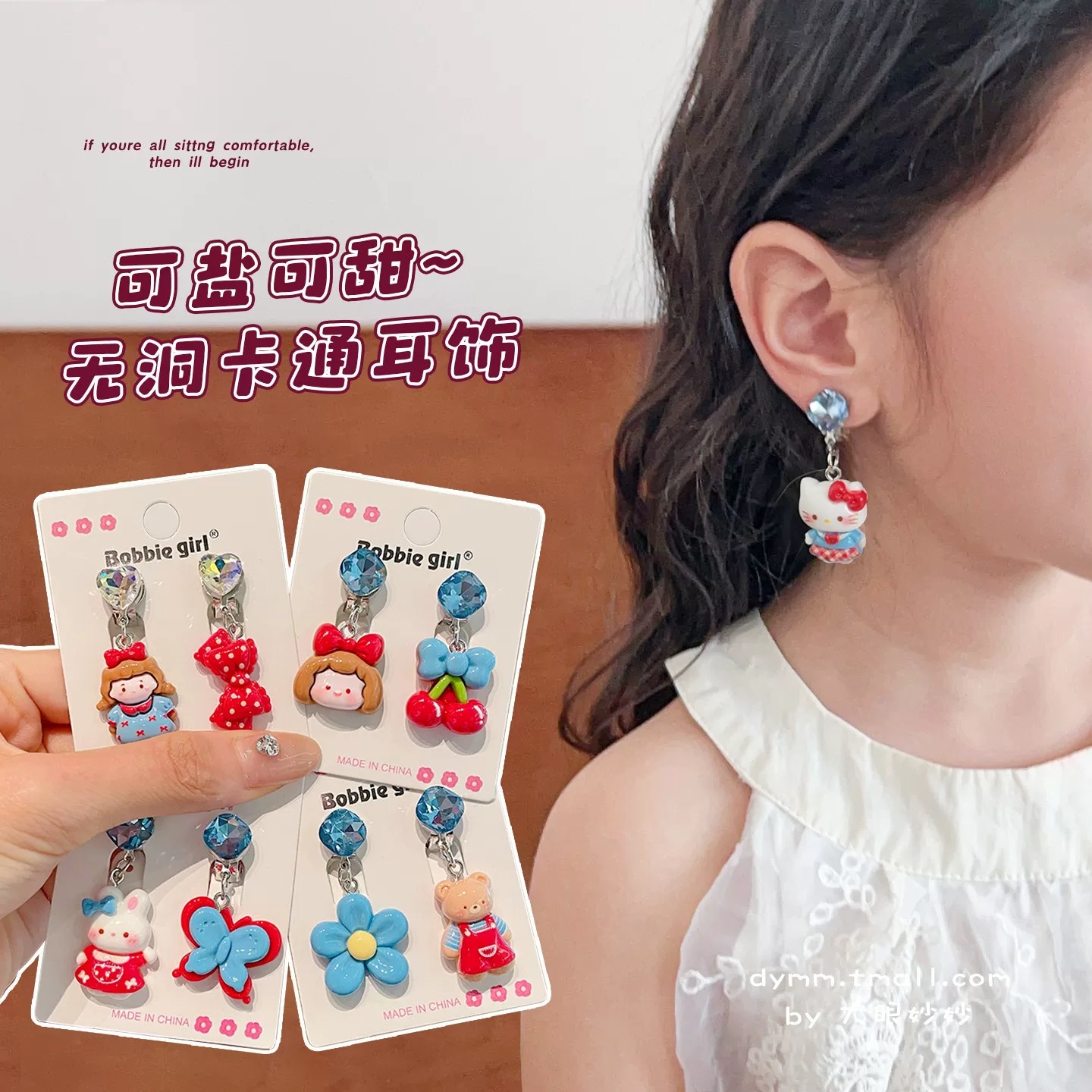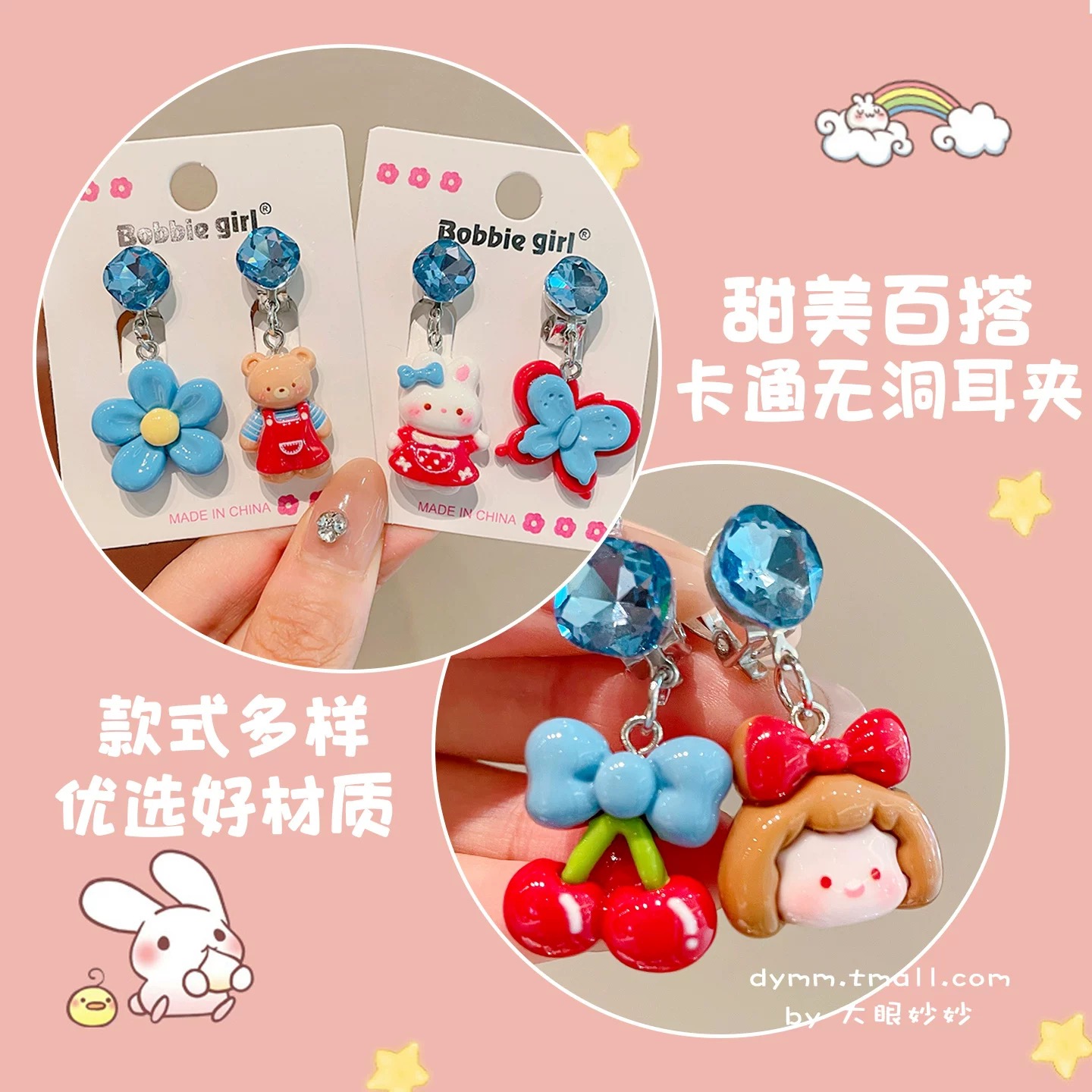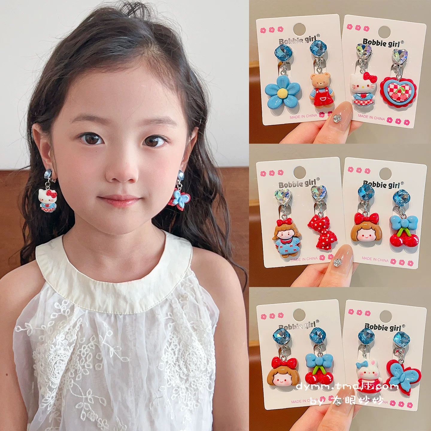 Children'sCherry Heart Shape Ear Clip Eardrops Girls Earless Anti-Pain Baby Pseudo Earrings Little Girl Cartoon Earrings 中文版