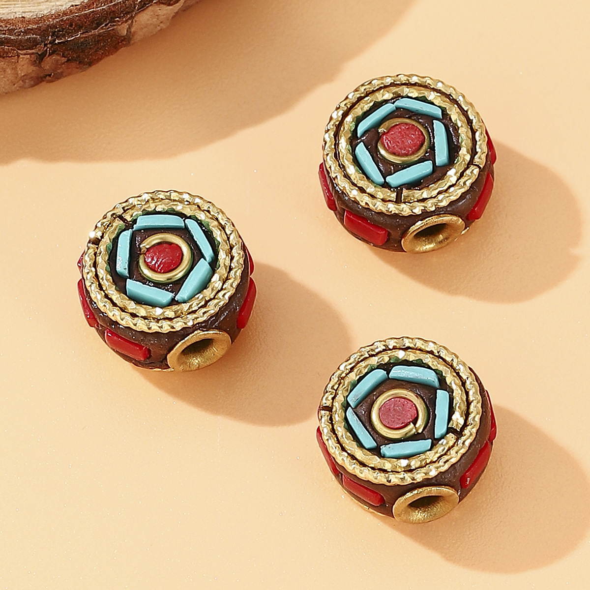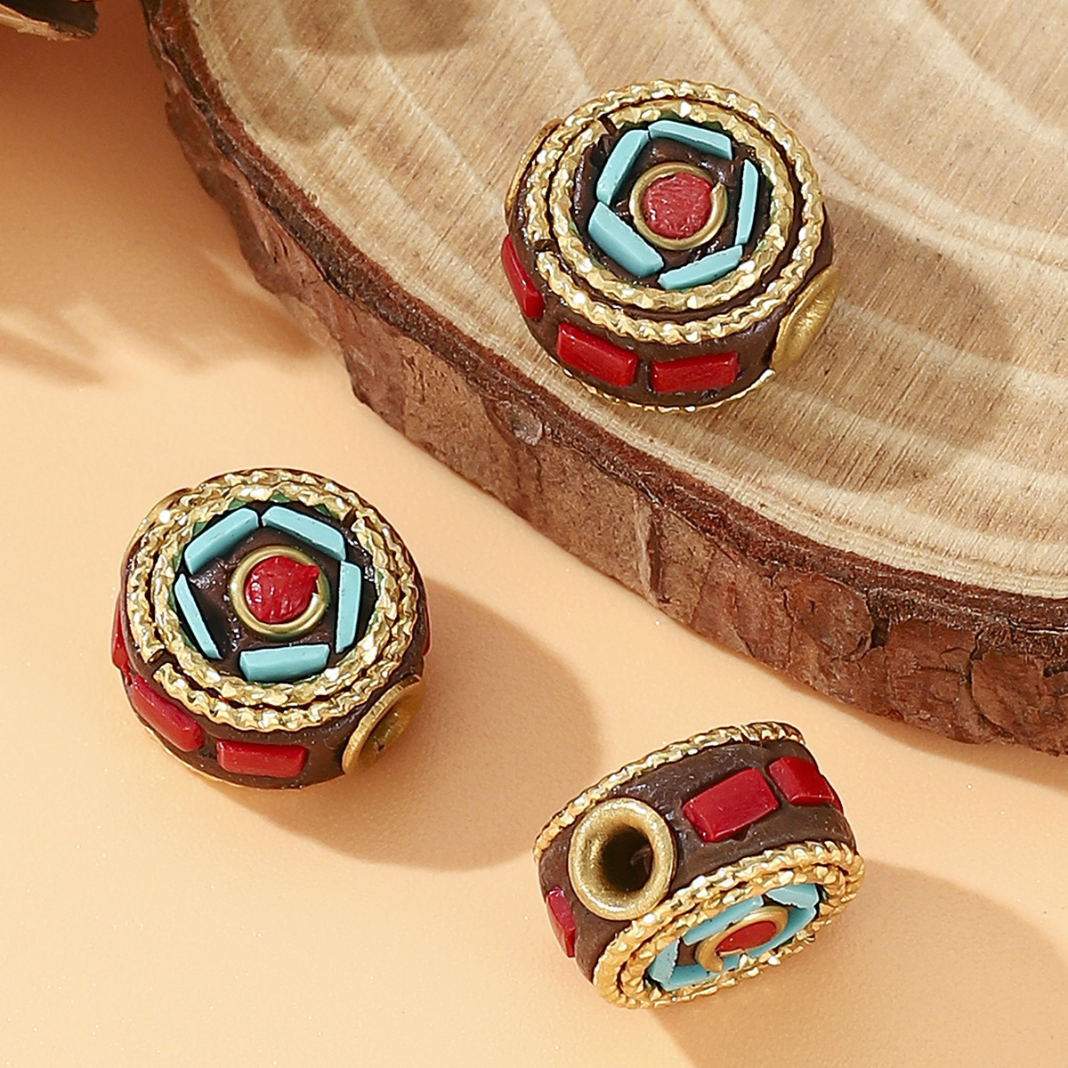 tibetan retro nepal beiyun copper bead inlaid turquoise redstone barrel beads diy ornament accessories spacer beads 中文版