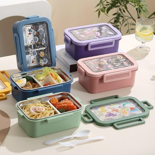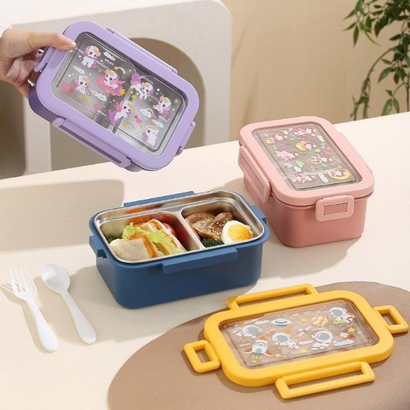 cartoon pattern separated bento box multi-color student office worker lunch box sealed leak-proof stainless steel compartment lunch box 中文版