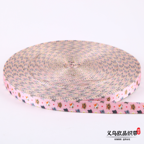 polyester texture printed ribbon bag clothing lace double-sided cute animal pattern pet fabric belt factory direct supply 中文版