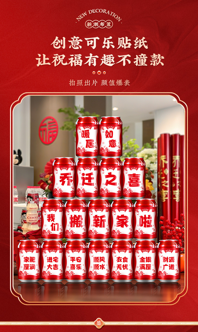 Coca-Cola Sticker Joy of Relocation Decorative Moving Gift Set New Home Move-in Ceremony Arrangement Beverage Stickers Joy of Relocation Decorative Coca-Cola Sticker 2025 New Model Creative Beverage Ornament New Home Move-in Ceremony Supplies