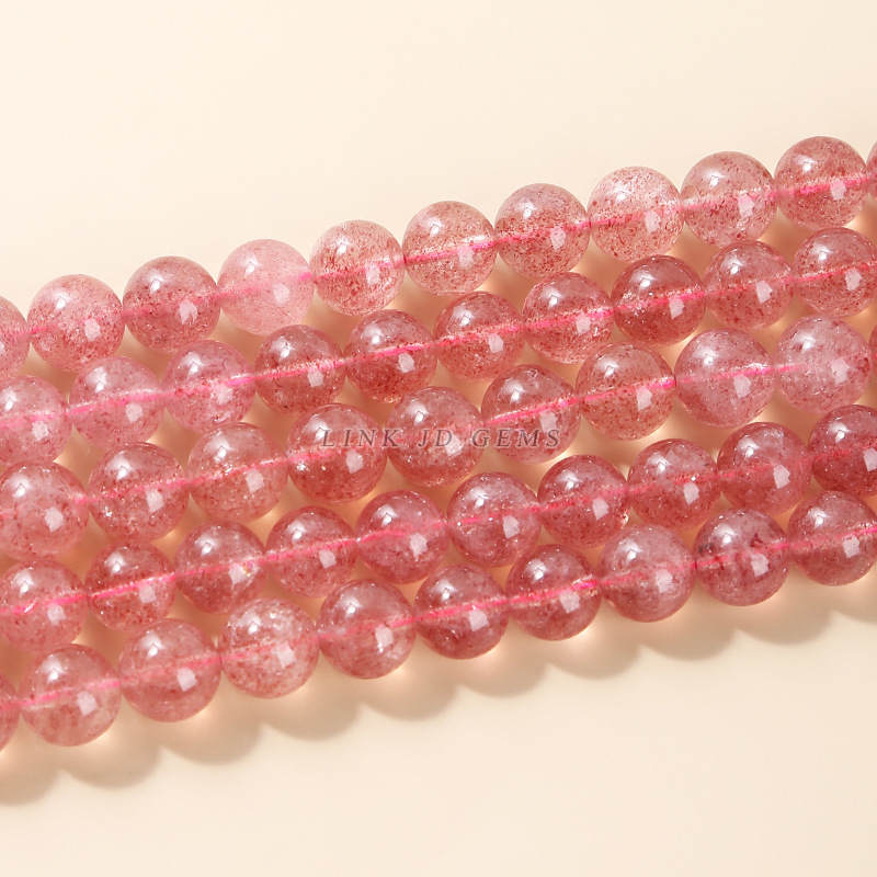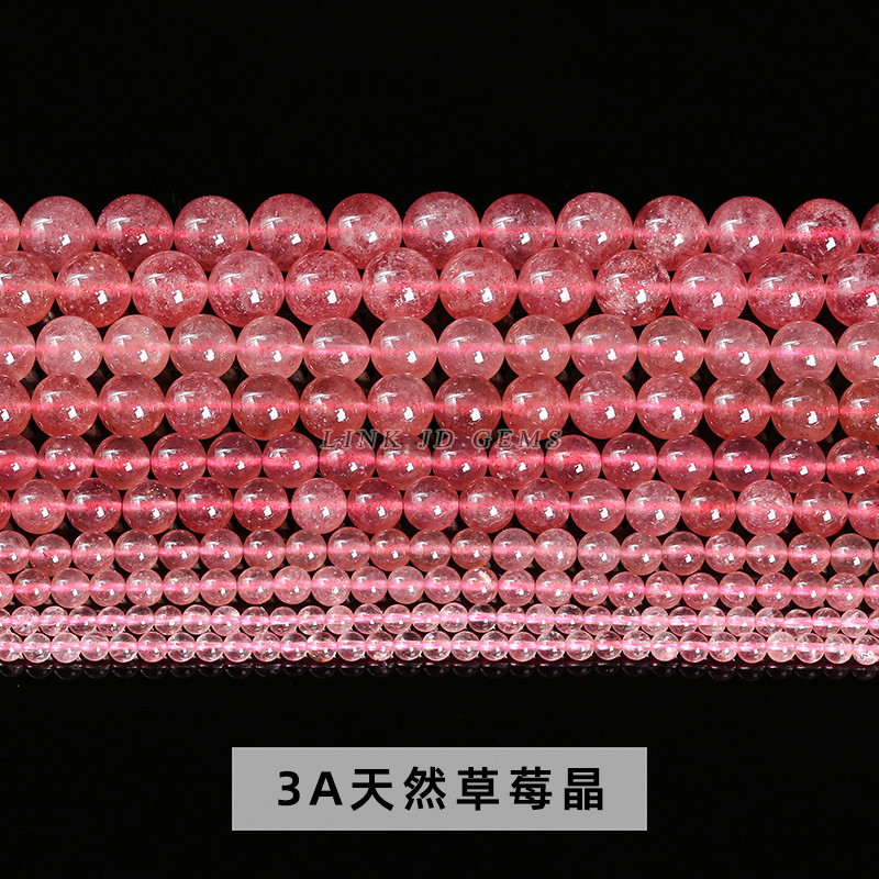 晶德珠宝 3A天然草莓晶圆珠散珠 diy饰品配件手串半成品珠子批发